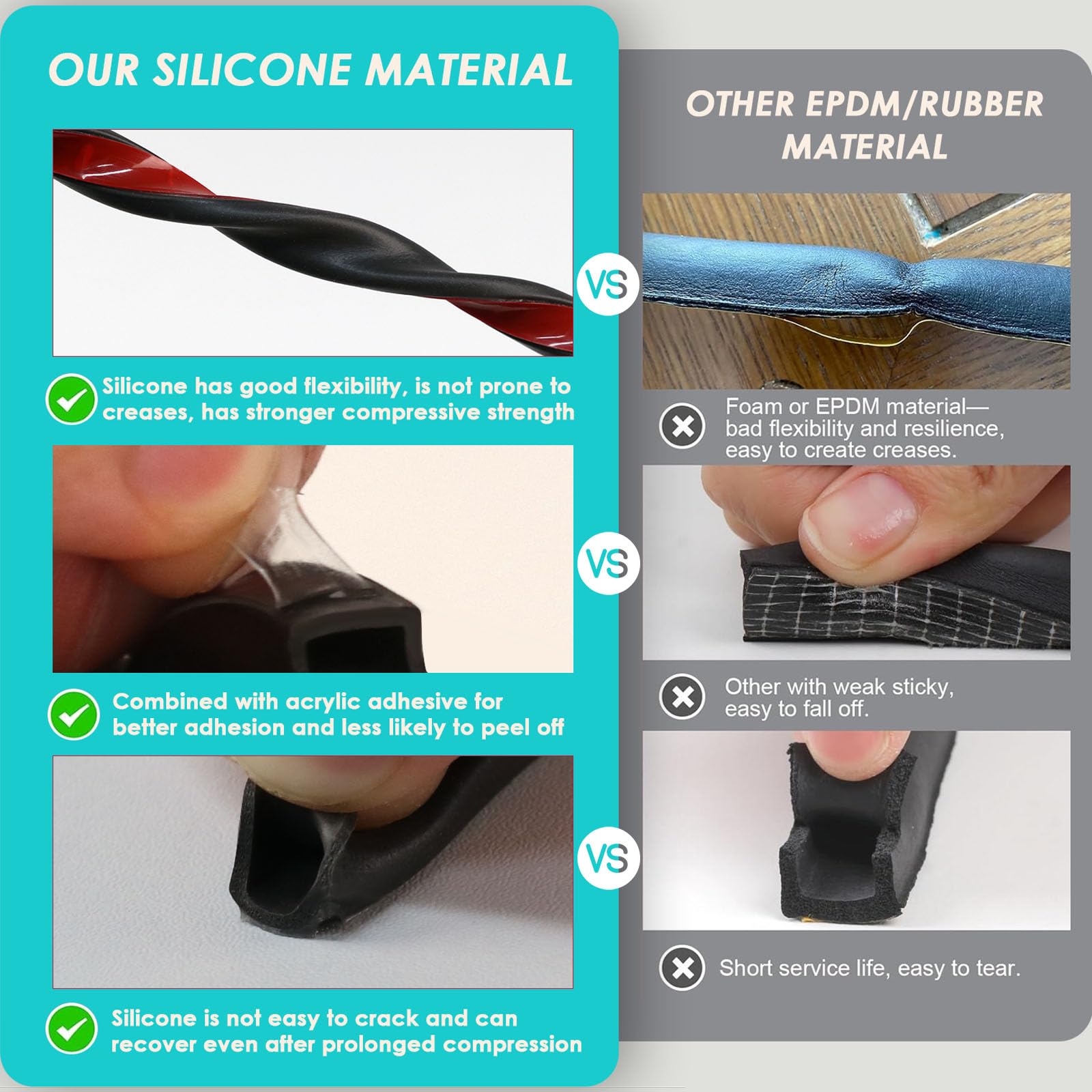 • 100% Silicone Material : Compared with foam and EPDM materials on the market, silica gel has higher density, better toughness, longer life and quite strong temperature resistance. Able to handle extreme weather conditions with ease, such as storms and heavy rain.Raw materials are more expensive, ensuring quality while also being more aesthetically pleasing