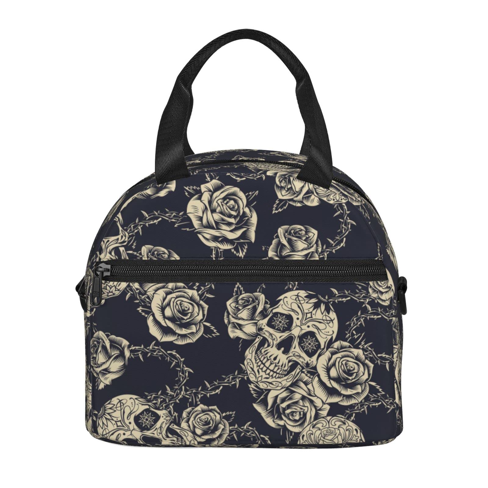 bassyil Skull Insulated Lunch Bag Reusable Lunch Box With Adjustable Shoulder Strap Cooler Tote Bag For Men Women