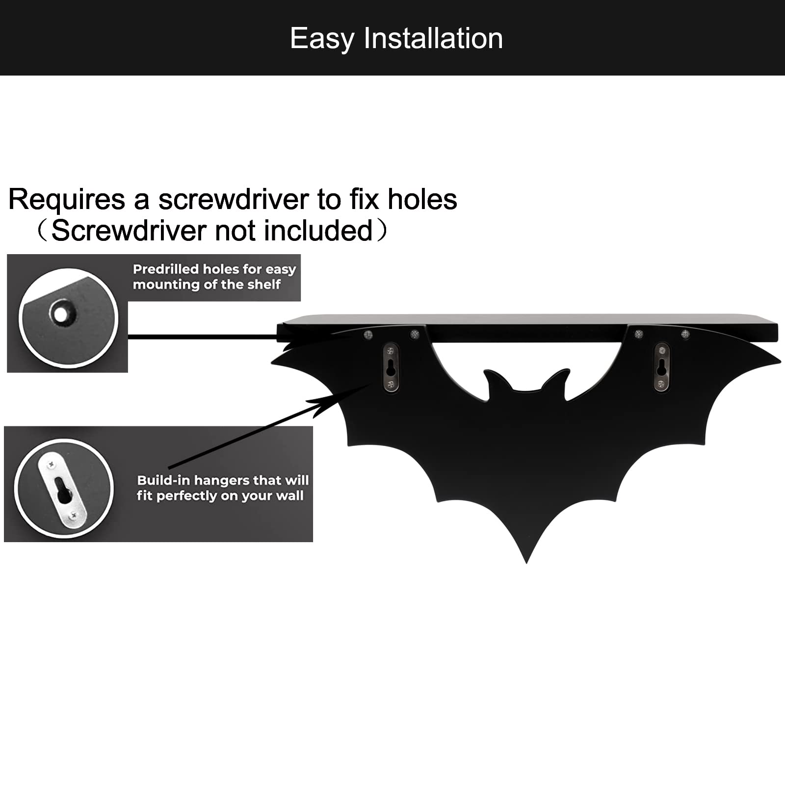 • A NEW HOME FOR YOUR TREASURES -Bat Shelf Functions: 1:Theme decoration 2: A wall rack for storage 3:There are 3 hooks for hanging keys, umbrellas, etc.