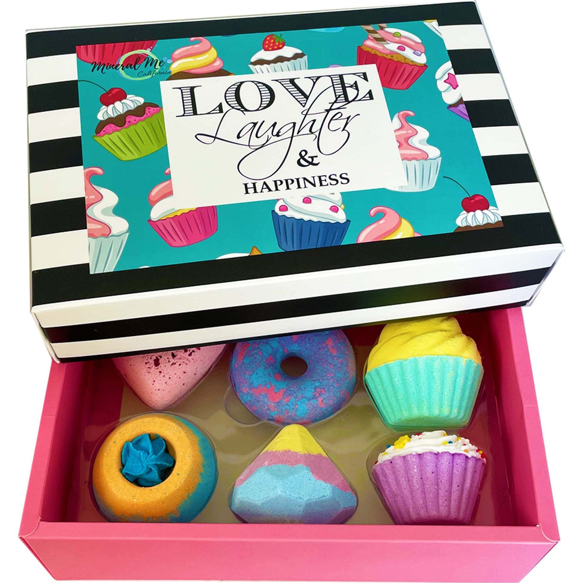 • CUTE DESIGN-This beautiful bath set is crafted with hand-picked sensual scents & Natural oils and comes in cute shapes like cupcake bath bomb, heart, donut bath bombs to give you a surprising bathing experience