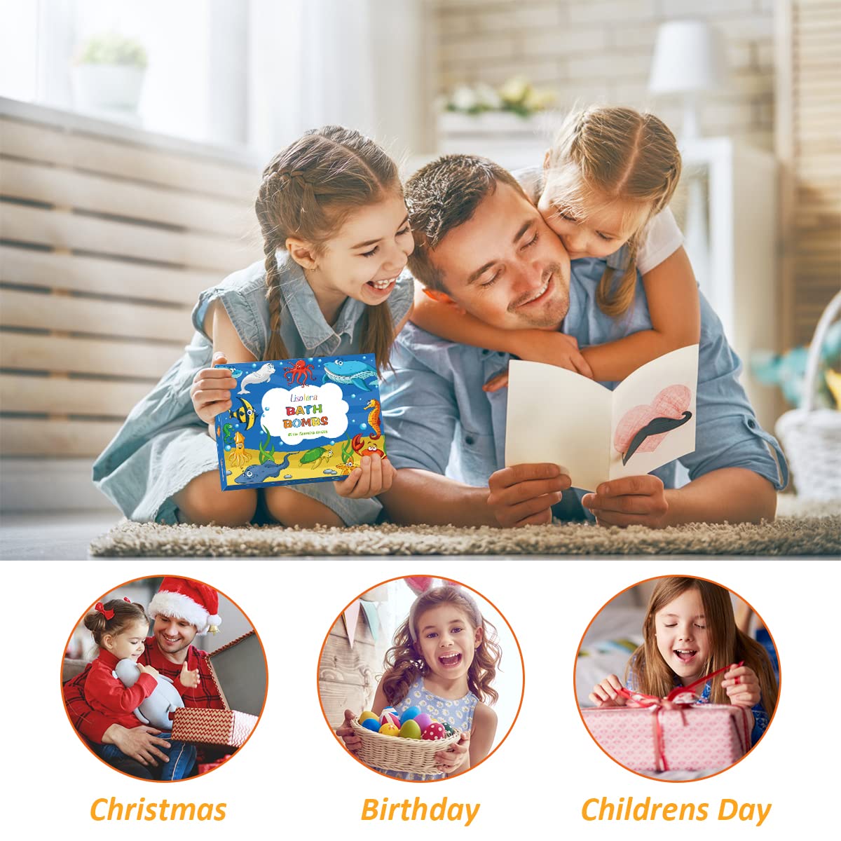 • 【PERFECT GIFT SET】This colorful bath bombs kit is beautifully packaged, making it a great gift for holidays such as Christmas, Halloween, Easter, Party Favor, Birthday, Children’s Day, Hanukkah or Holiday gifts for boy and girls, toddler, tween.
