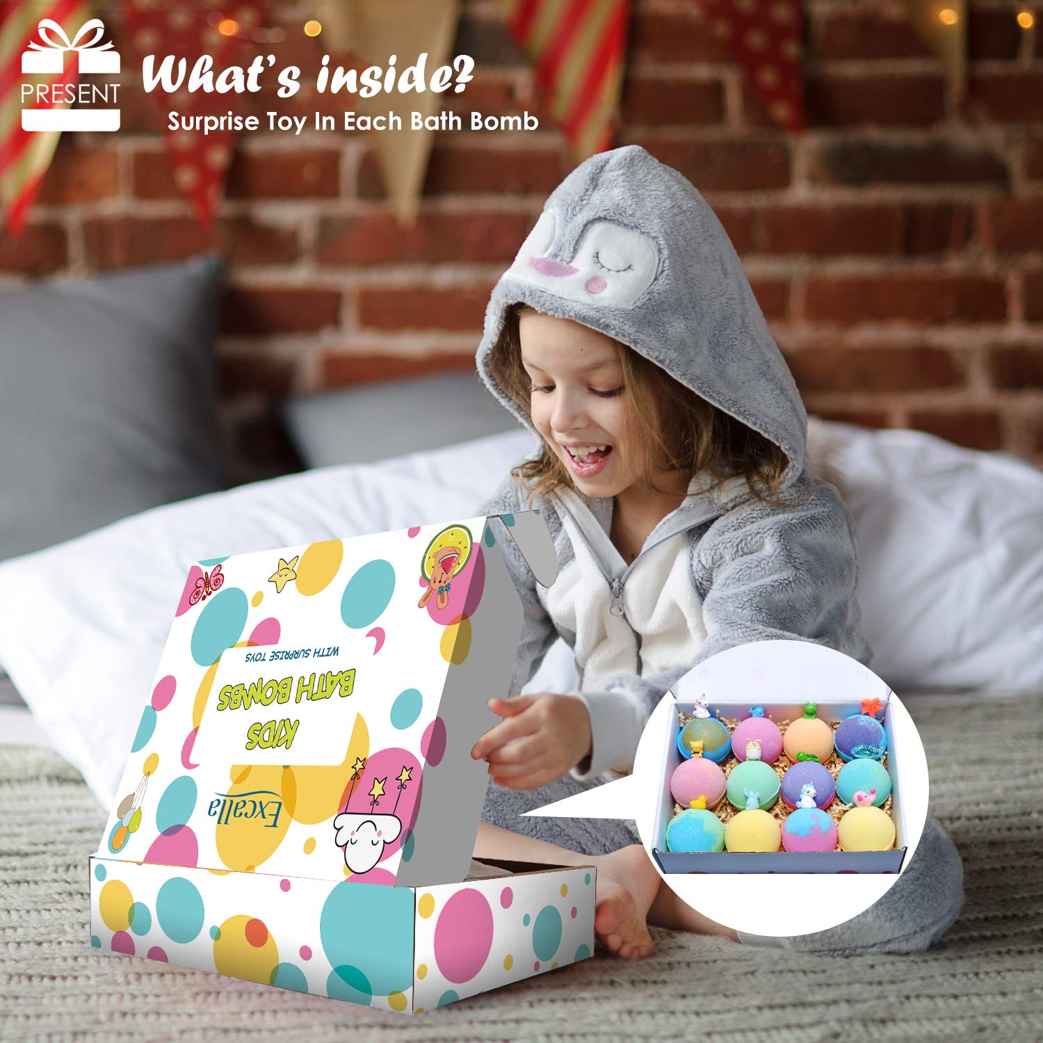 Bath Bombs for Kids with Toys Inside Surprise - 12pack Bubble Bath Fizzies Vegan Essential Oil Spa Bathbombs Fizz Bath Balls Kit for Girls Boys Women Skin Moisturize, Handmade Girl Gift Set, Kid Safe