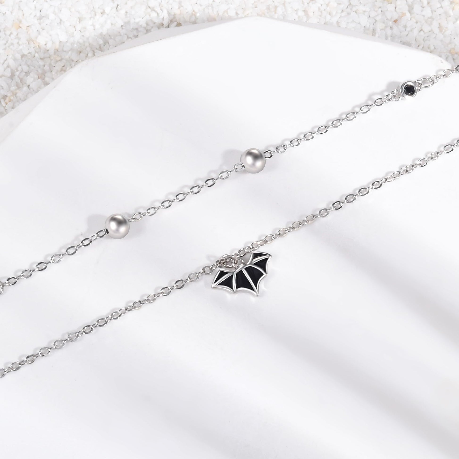 Bats Anklet 925 Sterling Silver Blacks Bats Ankle Bracelet for Women Dainty Boho Bats Chains Adjustable Beach Bats Black Zircon Anklet Layered Anklet Jewelry 11 Inches