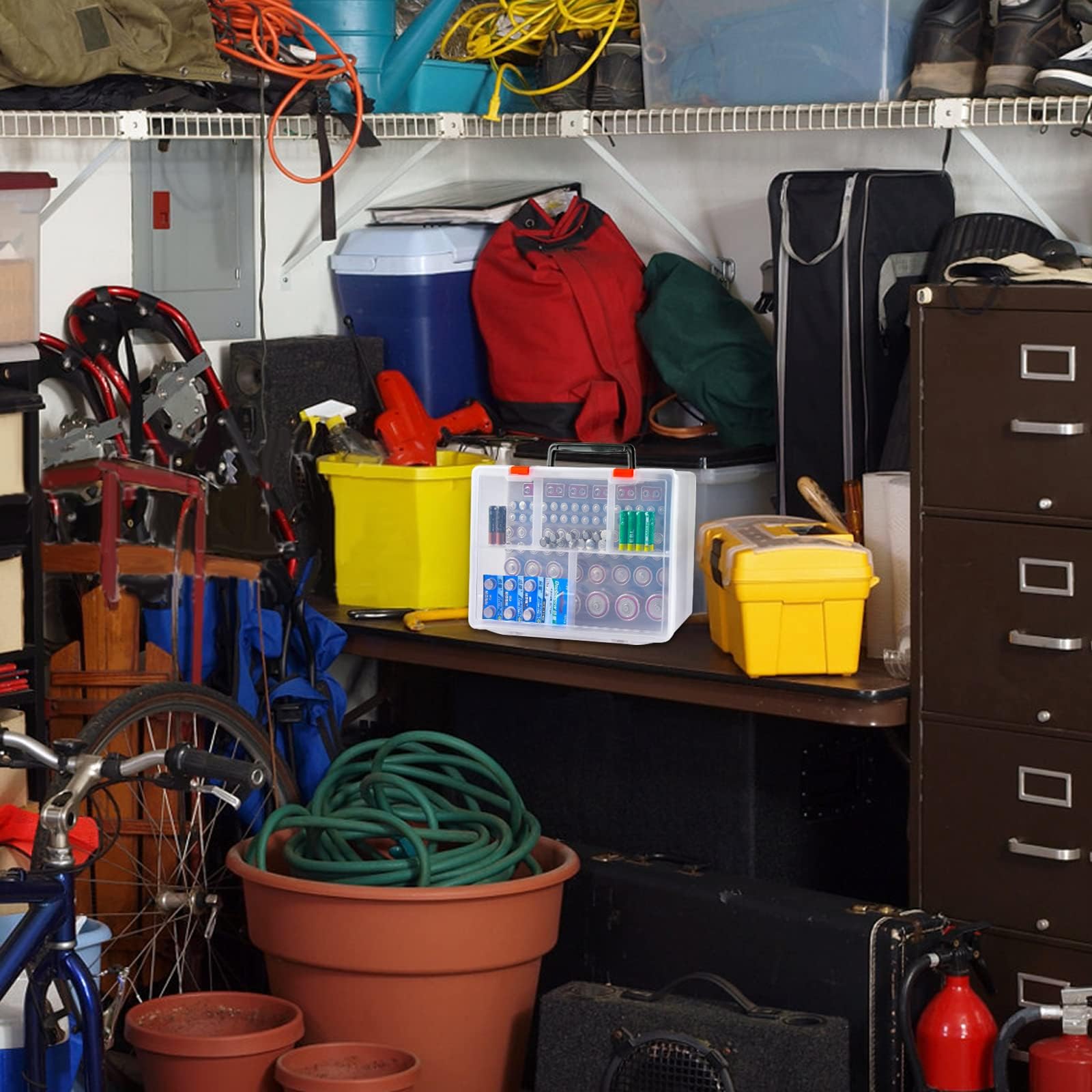 • BATTERY HOLDER WITH PREMIUM MATERIAL: Garage Gadget Organization made of great quality plastic materials, more resistant and crashworthiness than acrylic resin. Battery container organizer will make the battery 100% safe. Let you and your family to store batteries without worries.