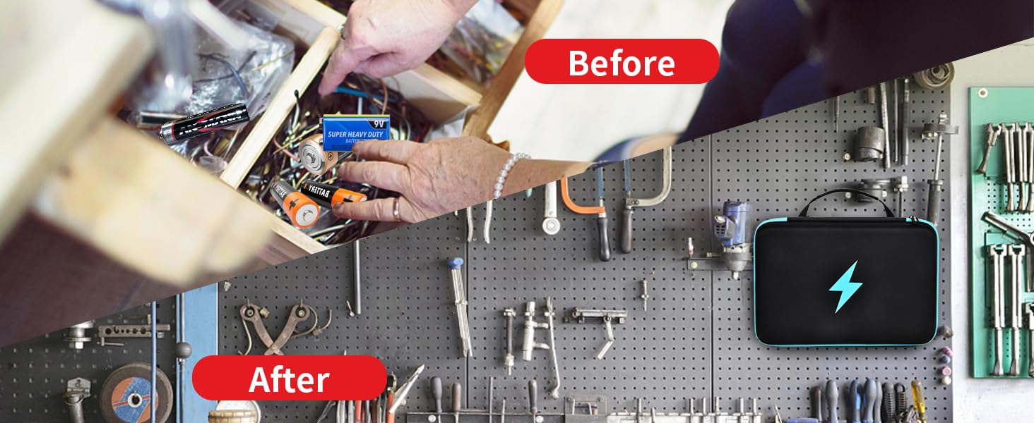 • Lightweight & Portable Battery Box Containers: Case for battery storage with smooth and sturdy 360 degree zipper for easy opening and closing, strong top handle supper convenience for you take the batteries on the road, wall hanging battery storage