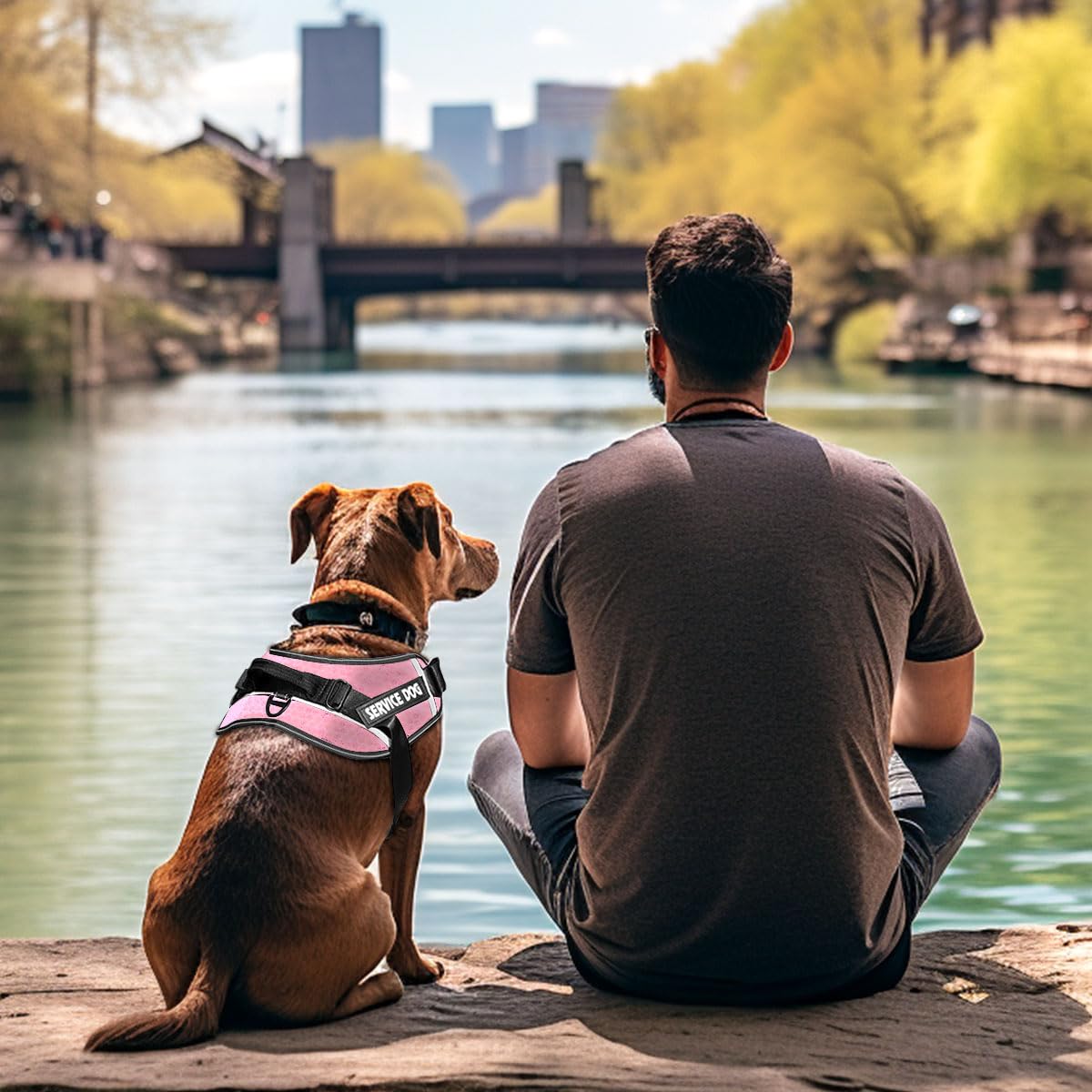 • Built to Last:No-pull service dog vest made of high quality durable nylon material and sponge pads.Sturdy fabric handle on the back,easy control for your pet dogs outdoor sports.The service dog harness come with adjustable neck and chest strap with 2 strong release buckle.Easily adjust neck and chest to fit your dog perfectly.Service dog vest come with a 5ft nylon dog leash with soft padded handle.