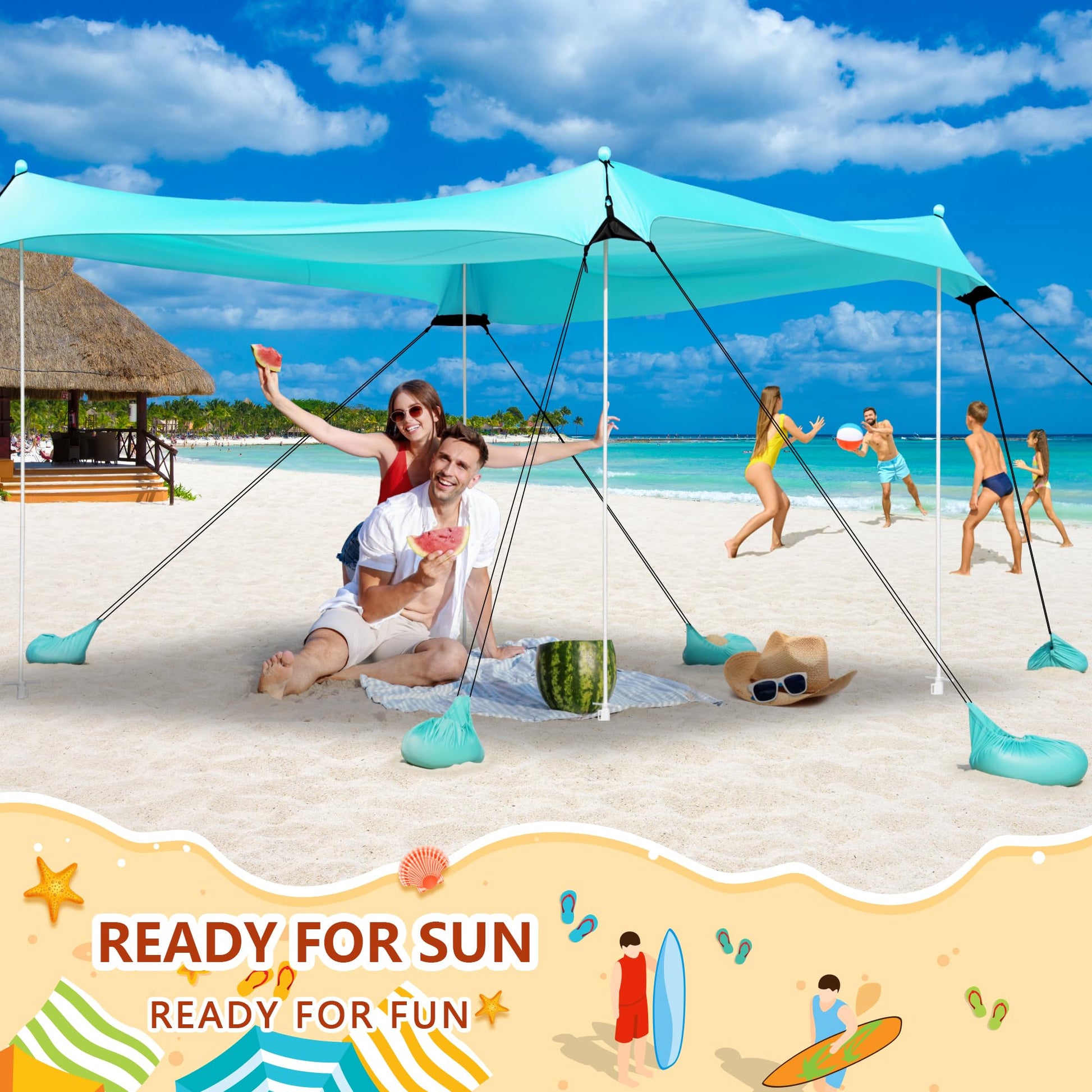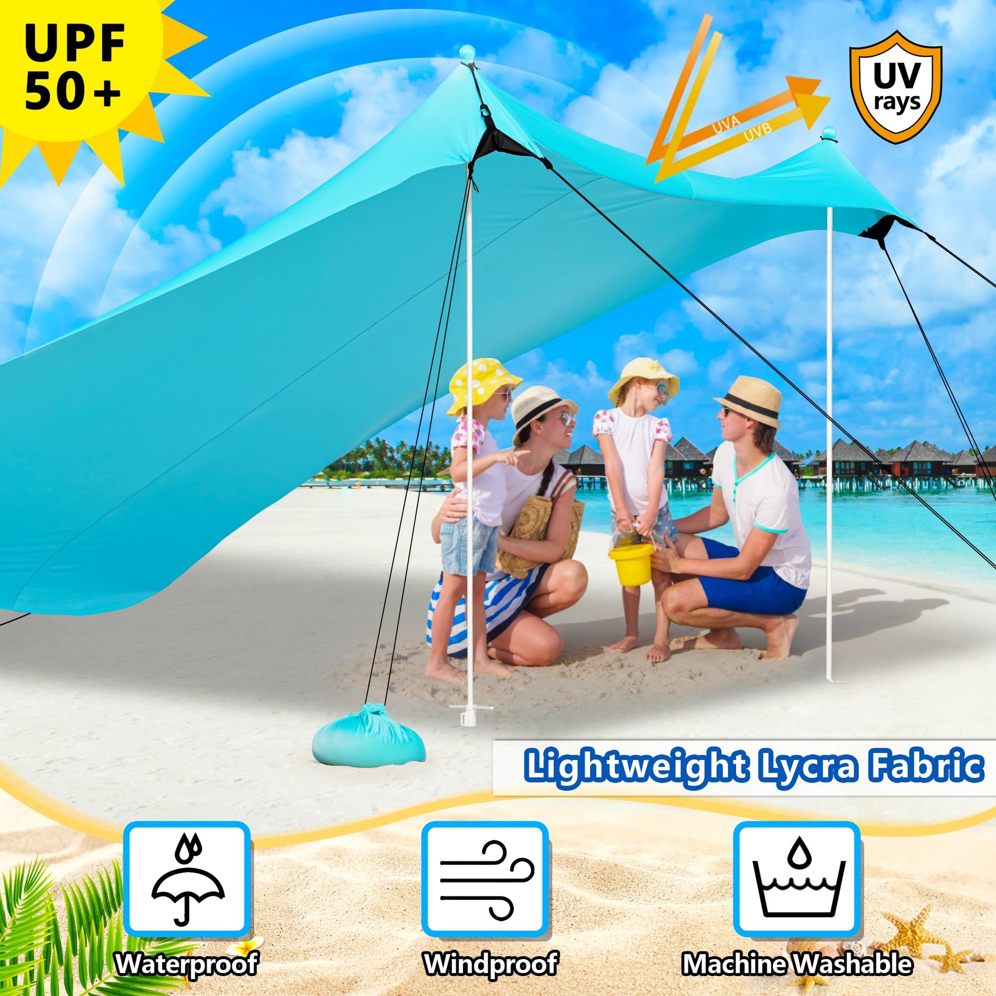 • 【Superior UV Protection】Crafted with highly elastic lycra fabric and offering UPF 50+ sun coverage. Uboway beach shade can reduce more than 96% of the harm from UV rays; It's a perfect family-friendly shelter, protects the skin from sunburn and glare during your outdoor fun time.