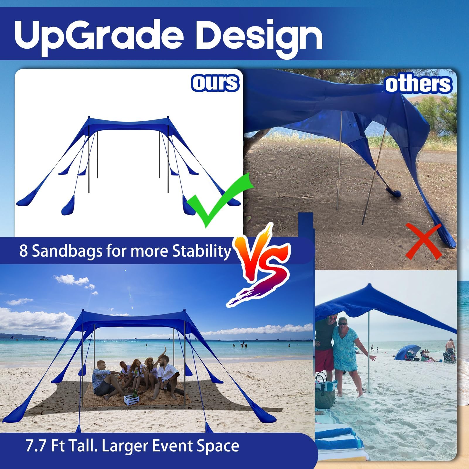 • ☼8-SANDBAG DESIGN: 4 extra sandbags keep the beach tent in good, stable condition in windy weather. We also enlarged the size of the sandbags to have a larger filling volume and to stabilize the awning better.