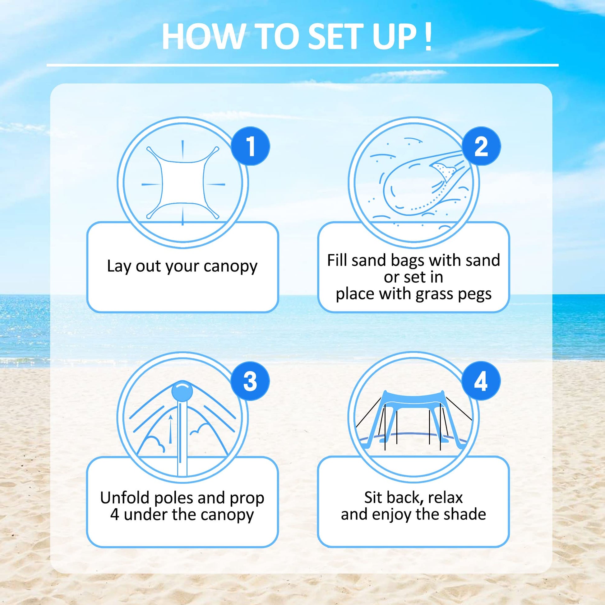 • BEACH CANOPY : This beach sun shade is a must have for family, the color nave blue of this beach canopy is same as the sky and the ocean, being in this beach tent makes you feel relaxed and happy.