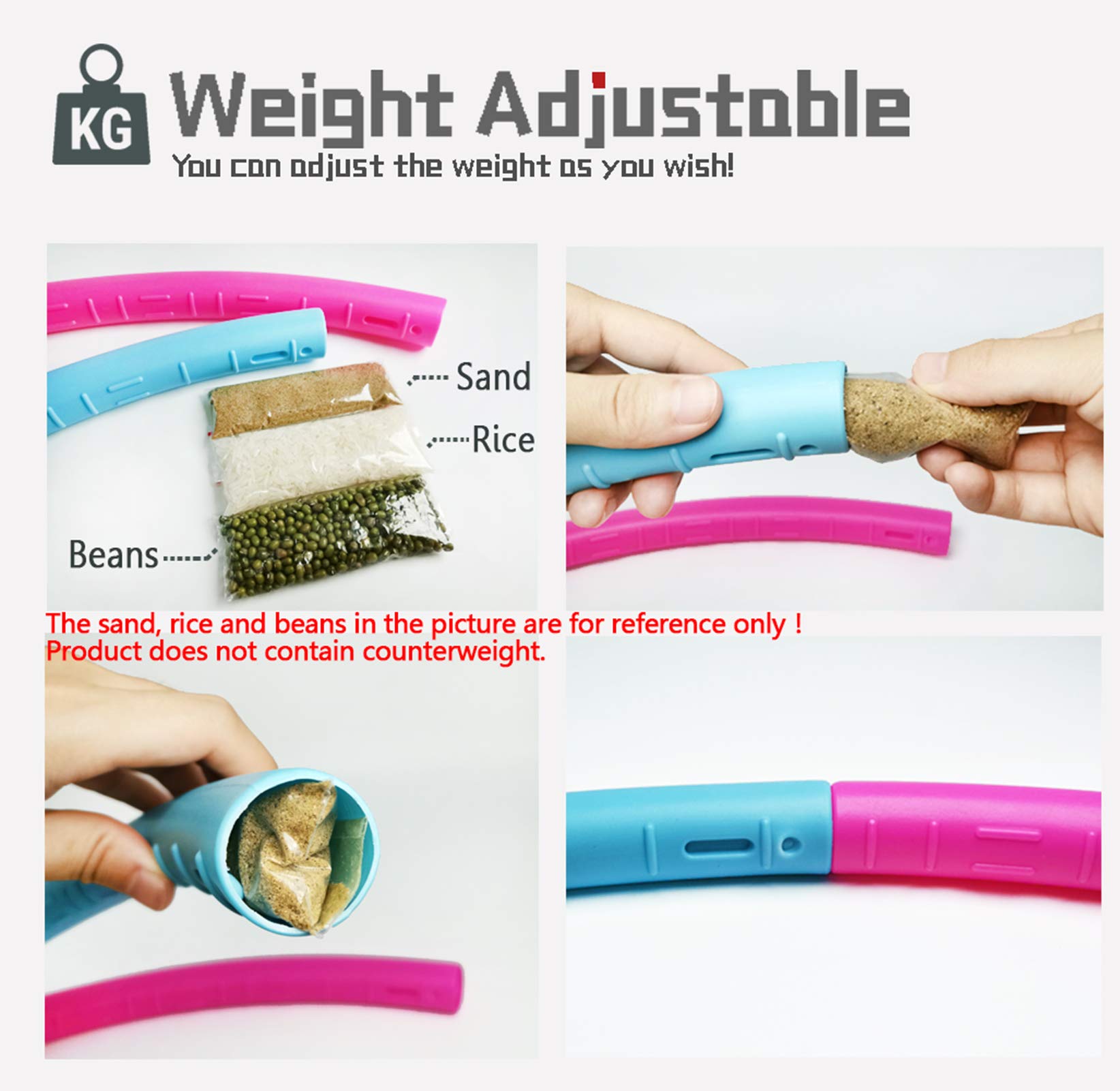 • WEIGHT ADJUSTABLE: The inner tube of hoops are hollow, so the weight can be adjusted by adding counterweights (such as rice, sand, grains, beans, etc.) to meet the weight needs of different children.