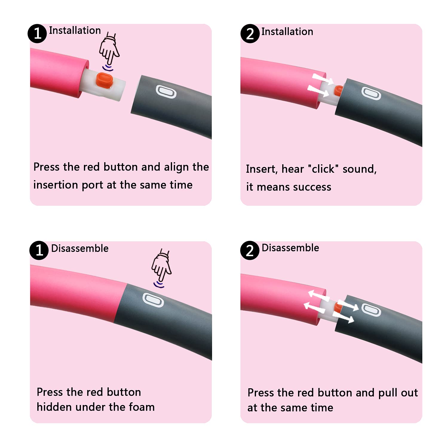 Beakabao Exercise Weighted Hoops for Adults and Kids, Adjustable 8 Sections 2LB Detachable Fitness Hoop, Weight Loss Core Strength Workout Sport