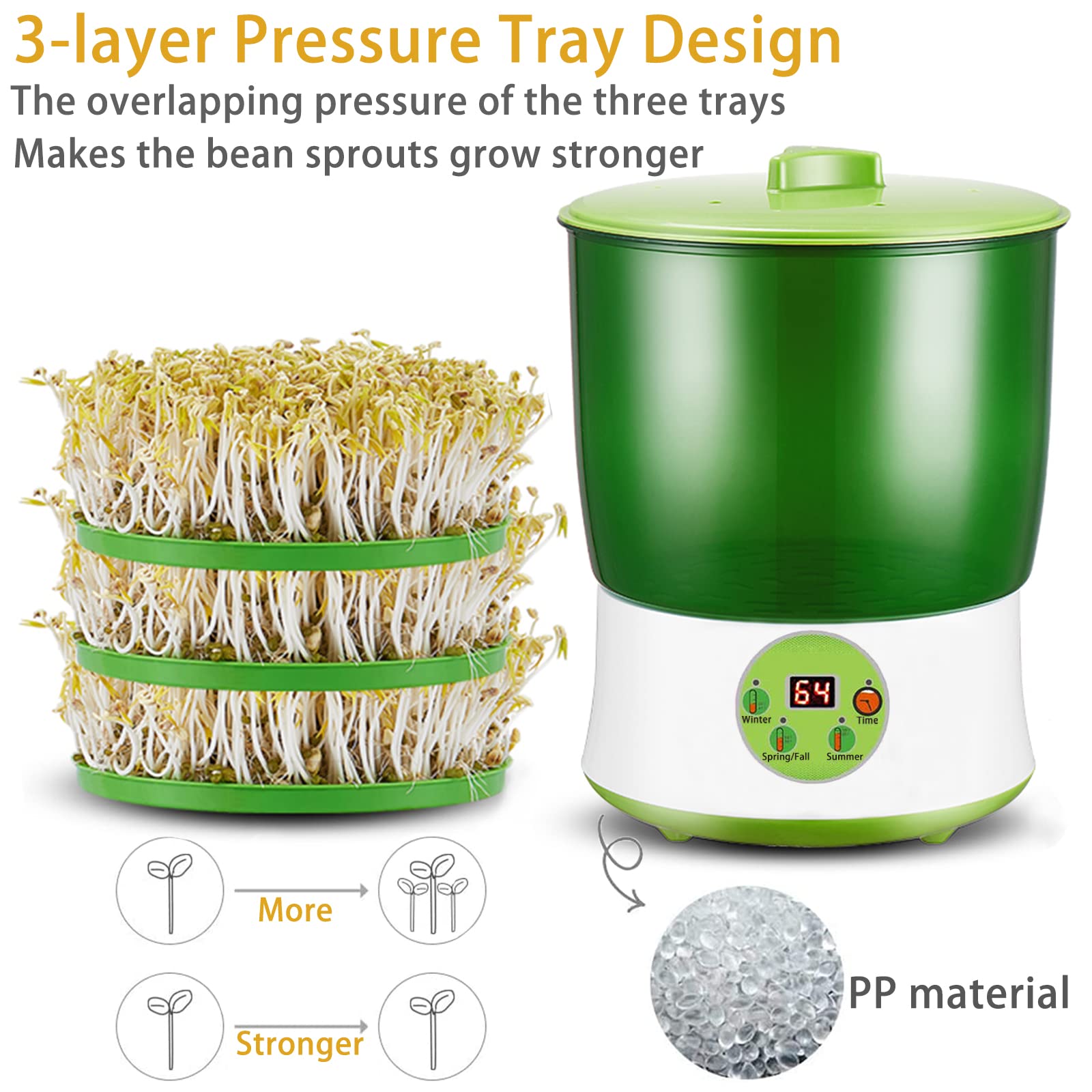 Bean Sprouts Machine, Seed Sprouter Kits, LED Display Time, Intelligent Automatic Bean Sprouts Maker, 3 Layers Function Large Capacity Seed Grow, Also for Radish, Alfalfa, Wheatgrass, Broccoli Sprouts