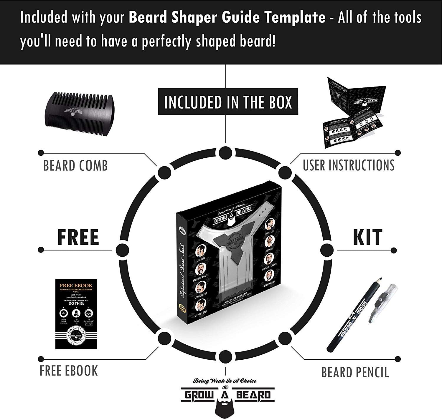 Beard Shaper & Beard Shaping Tool for Men, Beard Lineup Guide Template, Perfect for Styling and Edging, Includes Dual Action Beard Comb & Barber Pencil Liner