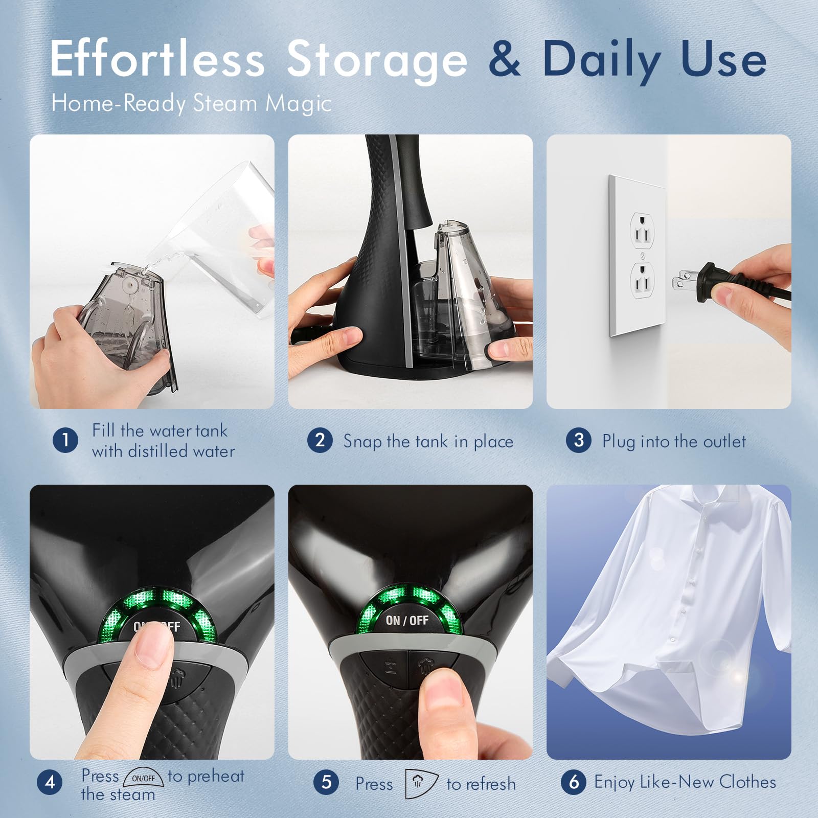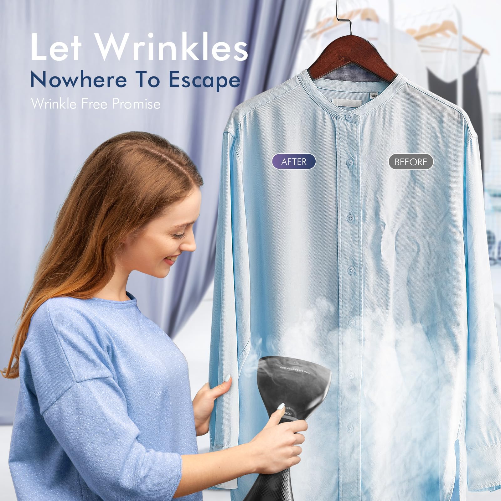 • Auto-Off Function: Features a 20-minute automatic shutdown function, ensuring energy savings and safety by powering off after 20 minutes of inactivity; With an 8ft-long power cable, the steaming range is broader without limitation of space, providing more flexibility and practicality during use