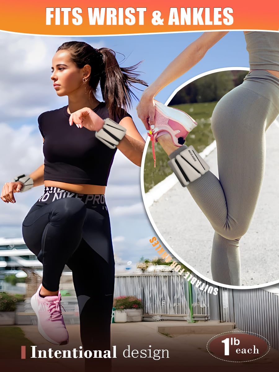 BECOJADDE Ankle Weights for Women Set of 2 (2 lb Each) Adjustable Wrist Weights Training Intensity for Strength Training Walking Running Yoga Pilates Jogging for Women Men, Pewter Beige