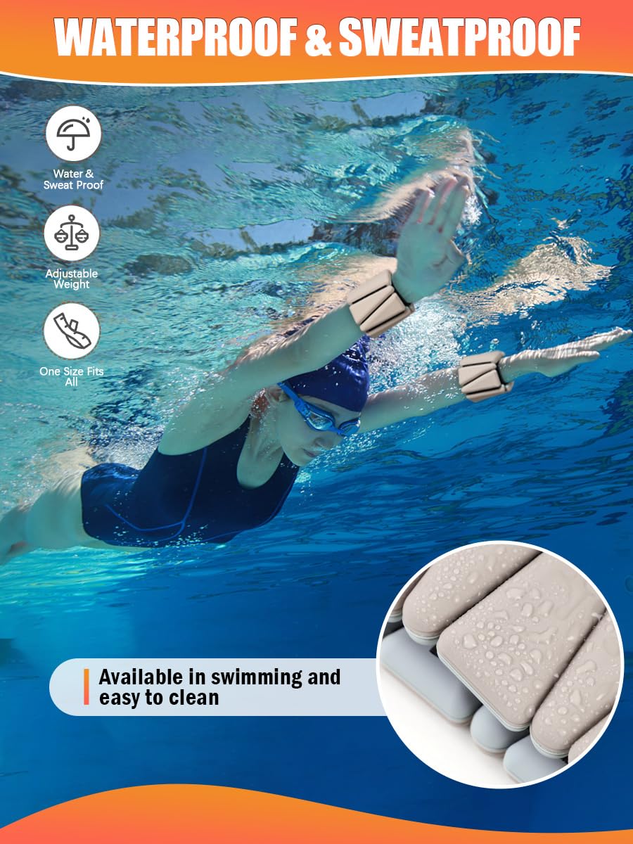 • WATERPROOF & SWEAT-PROOF: The surface of this ankle weights is made of all-inclusive silicone layer which is soft and skin friendly. The waterproof and sweat-proof design makes it easy to clean and odor free.