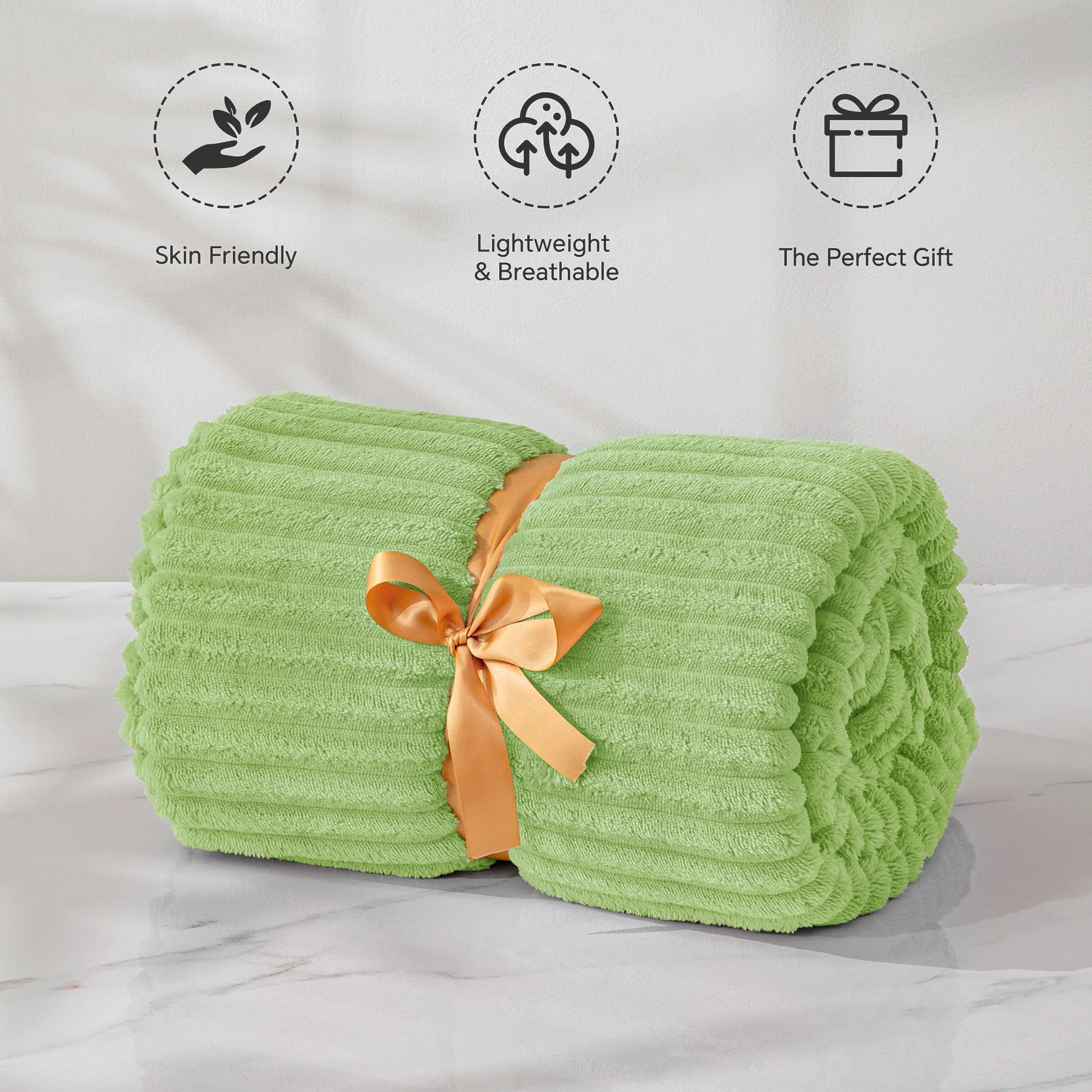 BEDELITE Sage Green Throw Blanket for Couch, 3D Ribbed Jacquard Soft & Cozy Fleece Blanket, Fluffy, Plush Lightweight Spring Throw Blankets for Picnic, Travel, 50x60 Inches