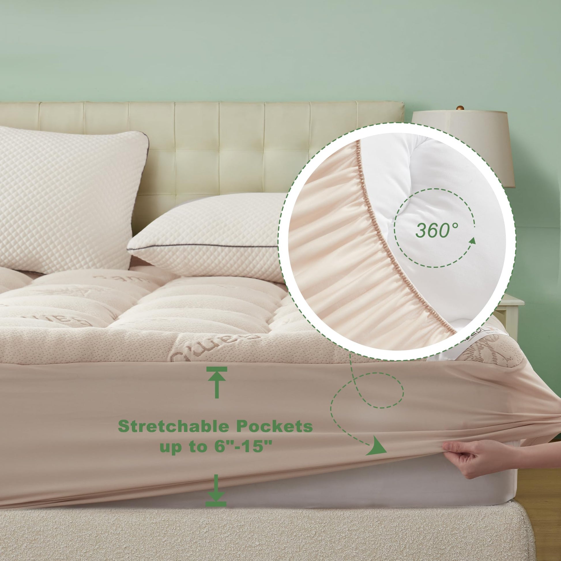 BEDLORE Twin Mattress Topper Viscose Derived from Bamboo, Thick Pillow Top Mattress Pad with Stretchable Pockets for 6"-15" Mattress, Soft Breathable Mattress Topper for Back Pain Relief(Beige)