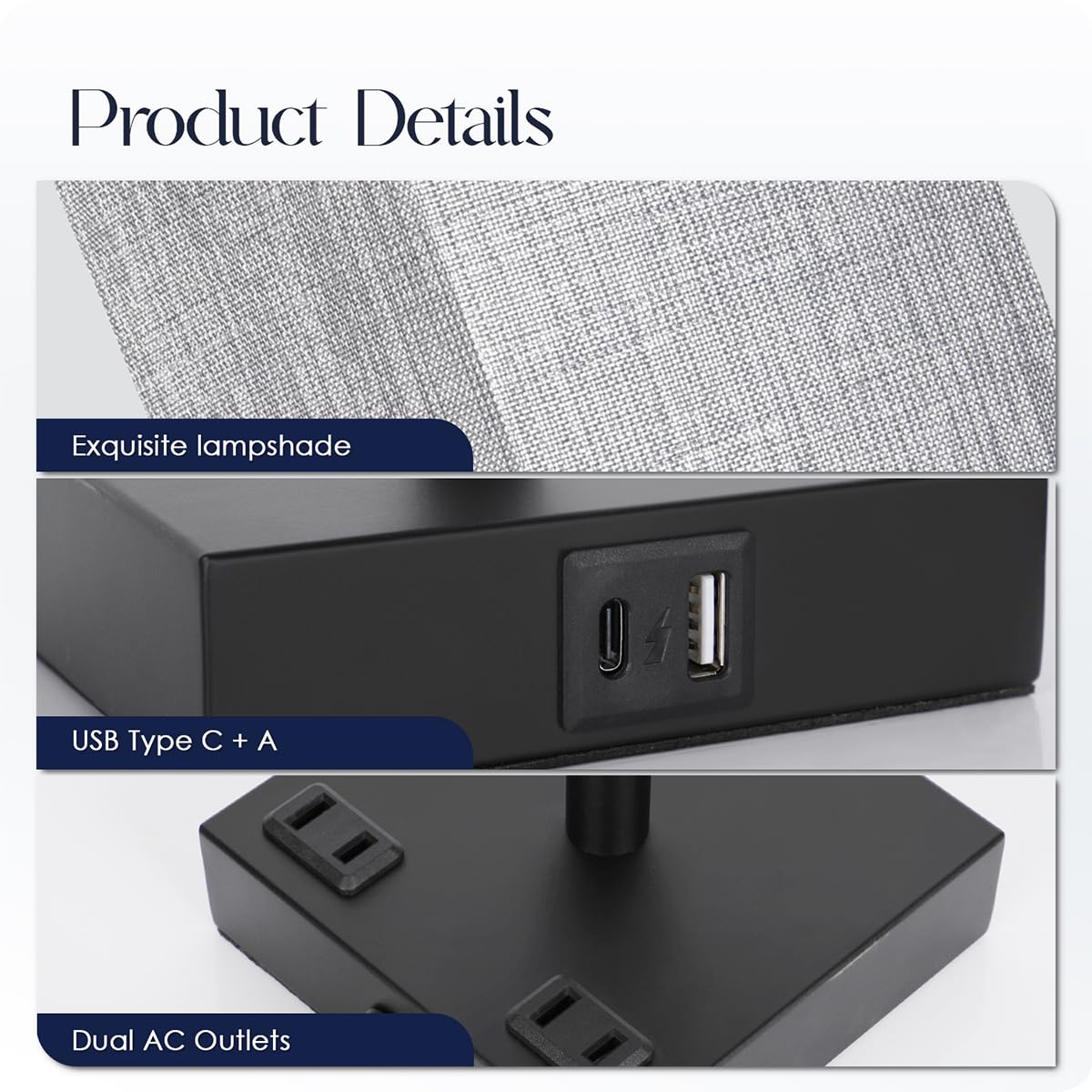 • USB C+A and AC Outlets: In addition to providing light, this modern bedside table lamp has a USB C & USB A(5V/2.1A) port and two AC outlets (120V)