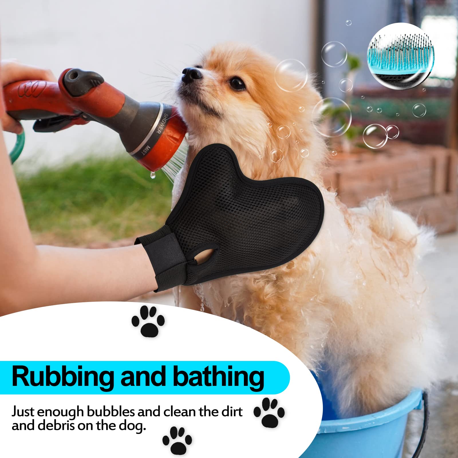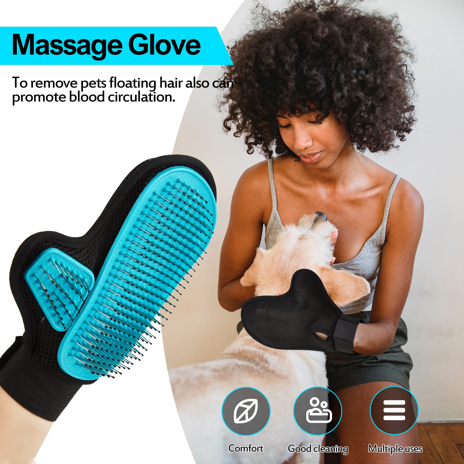 • 🐕🐱4-in-1 Grooming: Cut your deshedding time in half! These pet grooming gloves gently groom, de-shed, bathe and massage your furry friend.