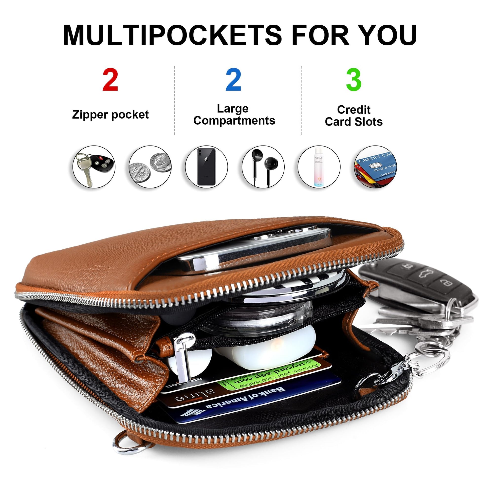 • 1. Perfect blend of functionality and style! This cute cell phone wallet purse for women is crafted from high-quality pebble leather, and features a RFID wallet providing added security against digital pickpocketing and a front slip pocket for easy access