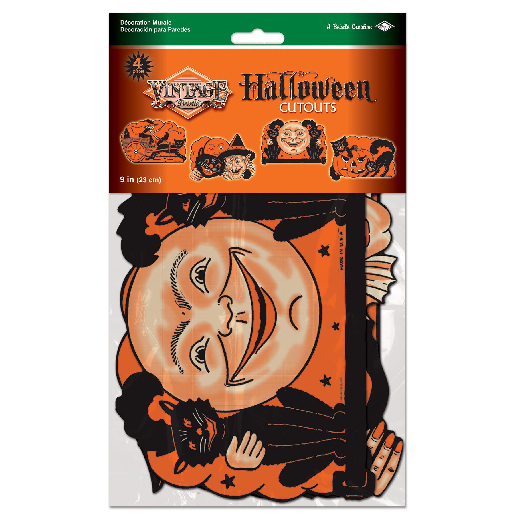 Details: Beistle 01182 Halloween Cutouts (4 Count). This package of cutouts has 4 different designs. They are a vintage style of cutout made of board stock and measure 9 Inch. These cutouts will look great hanging on a wall or in a window!.