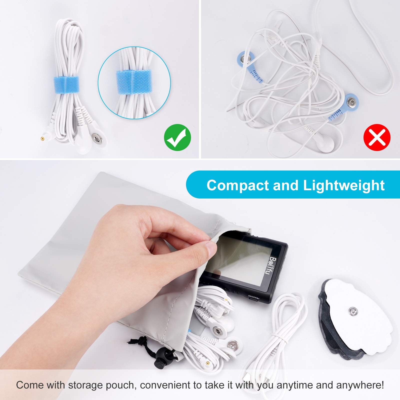 • 10 STRONG SELF ADHESIVE AND THICKER REUSABLE ELECTRODE PADS: The Belifu electrode massager comes with 10 self-adhesive reusable conductive pads and 5 set of leads wires, a comprehensive adhesive layer on the pad can be stuck more firmly onto the skin when used. REUSABLE FASTENING CABLE TIES- no more cable mess after use with fastening cable ties. A quick and easy solution for tens lead wires management. The Best Gift for Father's Day