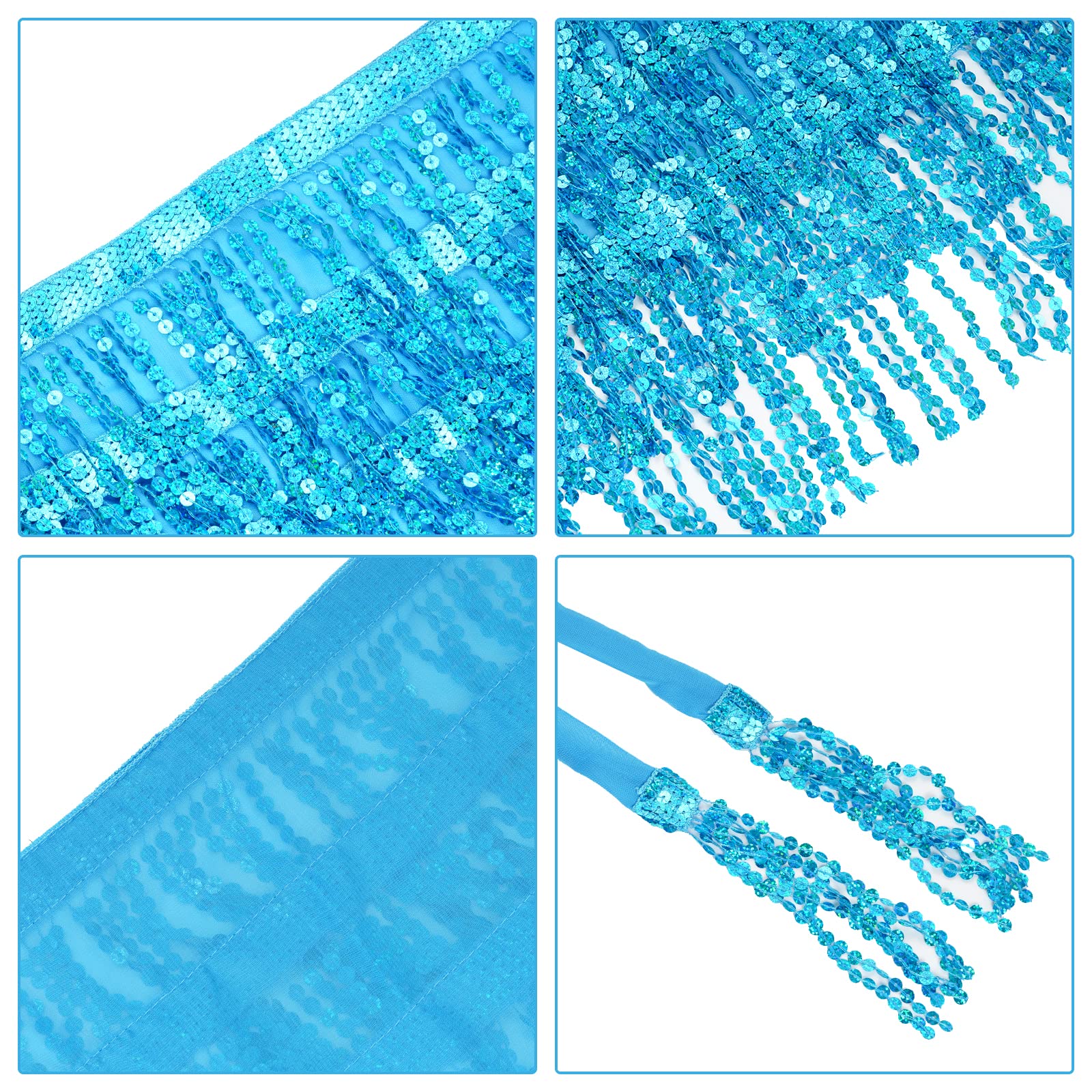 Belly Dance Hip Scarf Sequin Tassel Skirt Performance Outfits Sparkly Fringe Wrap Halloween Costume Party Rave Festival for Women and Girls, Blue