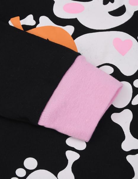 Benaive Halloween Pajamas for Girls Glow In Dark Holiday Pjs for Girl Cotton Pajama Sets 2 Pieces Kids Sleepwear Long Sleeves Size 10