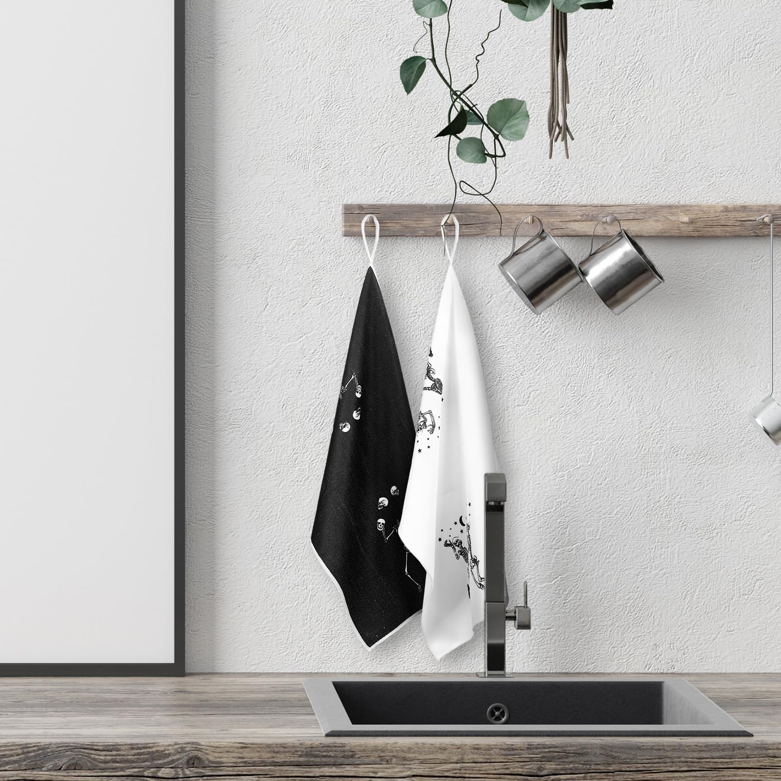 Bencailor 6 Pcs Halloween Skull Kitchen Towels Skeleton Dish Hand Towels Gothic Skull Tea Washcloth for Halloween Party Gifts Bathroom Kitchen Decor 24 x 16''