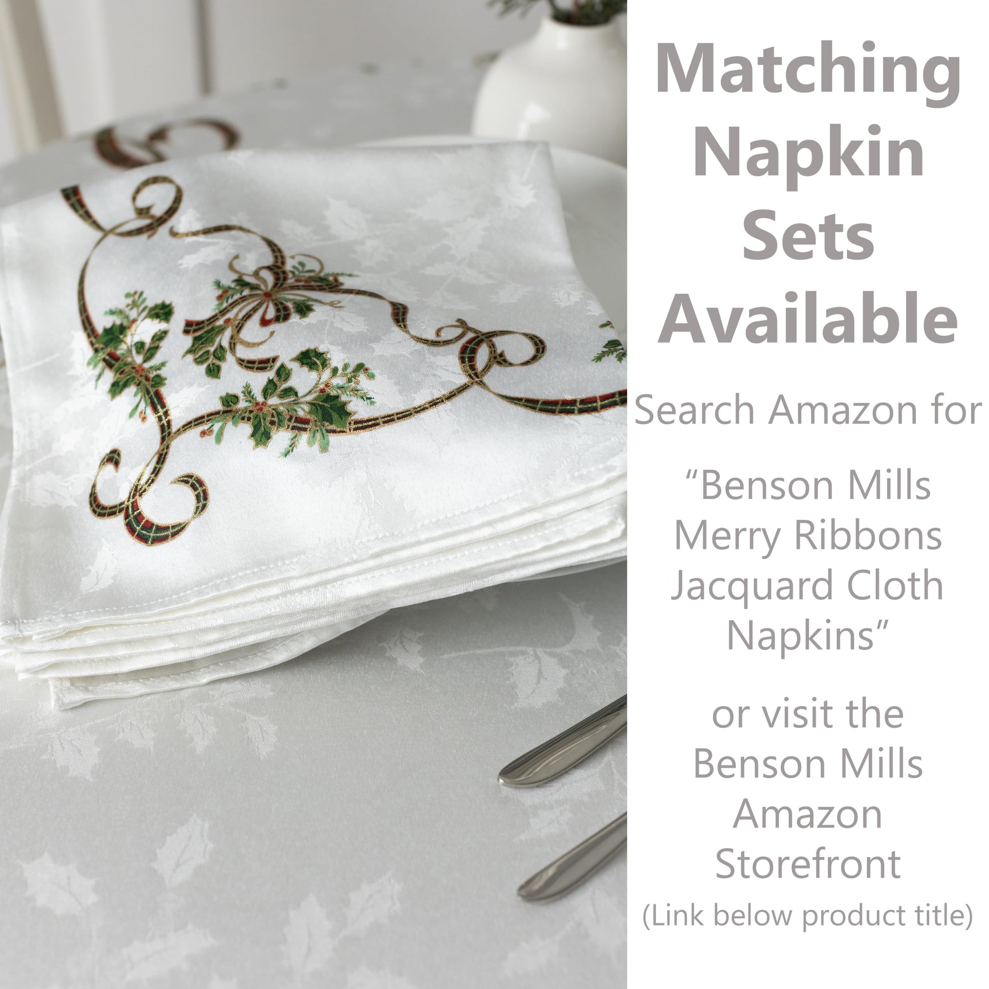 • MATCHING FABRIC NAPKINS SET OF 4 SOLD SEPARATELY. SEARCH AMAZON FOR “Benson Mills Merry Ribbons Jacquard Cloth Napkins.'