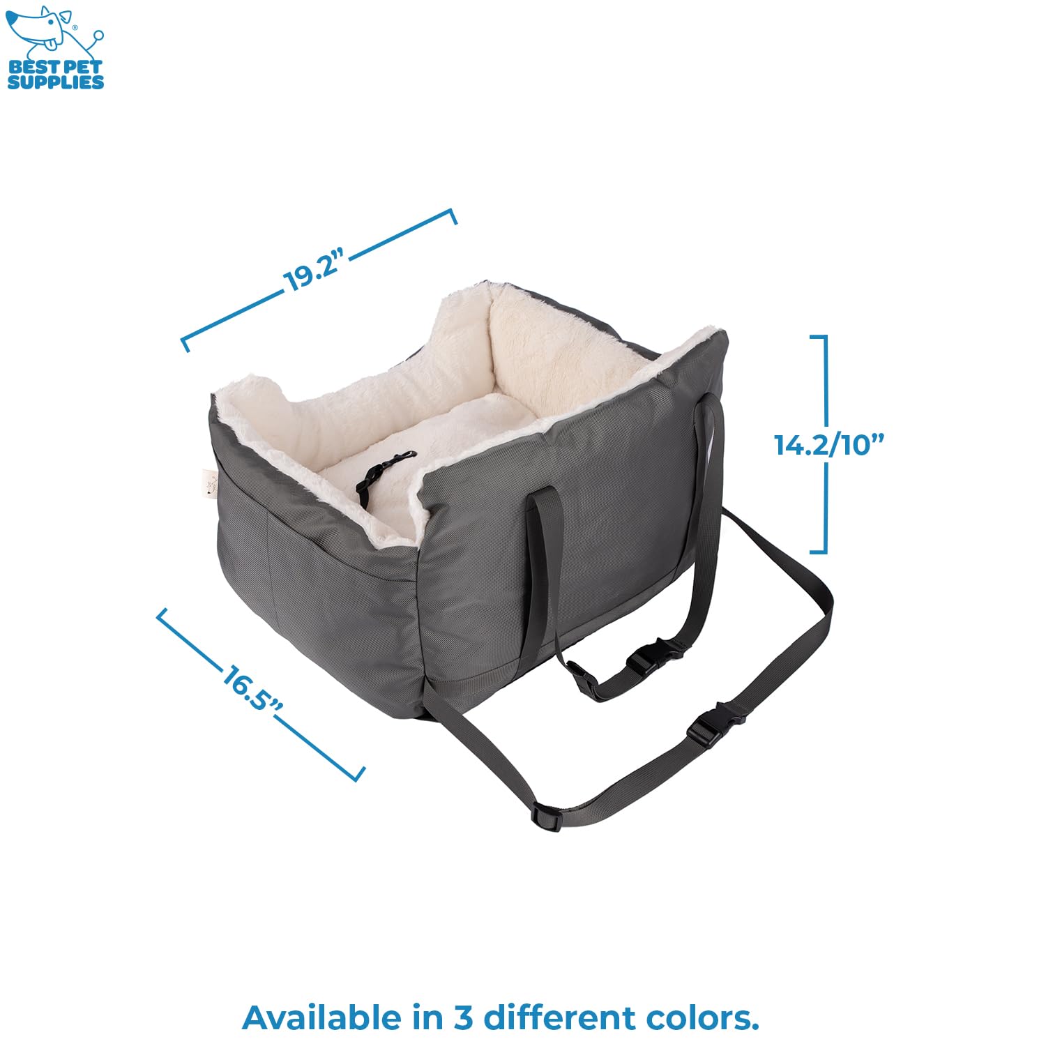 Best Pet Supplies Dog Pet Booster Seat, Dog Car Seats for Small Dogs & Medium Dogs, Soft Plush Cushion with Comfortable Bedding, Secure Straps, and Tall Pillow, Gray