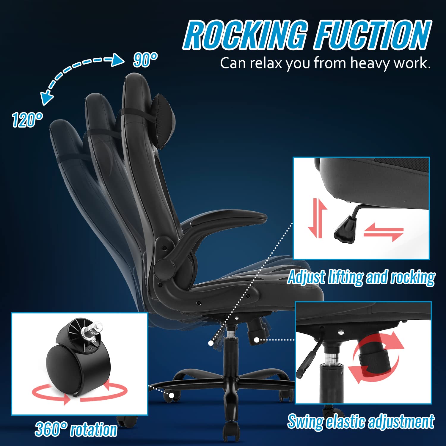 BestOffice PC Gaming Chair Ergonomic Office Chair Desk Chair with Lumbar Support Flip Up Arms Headrest PU Leather Executive High Back Computer Chair for Adults Women Men (Black)
