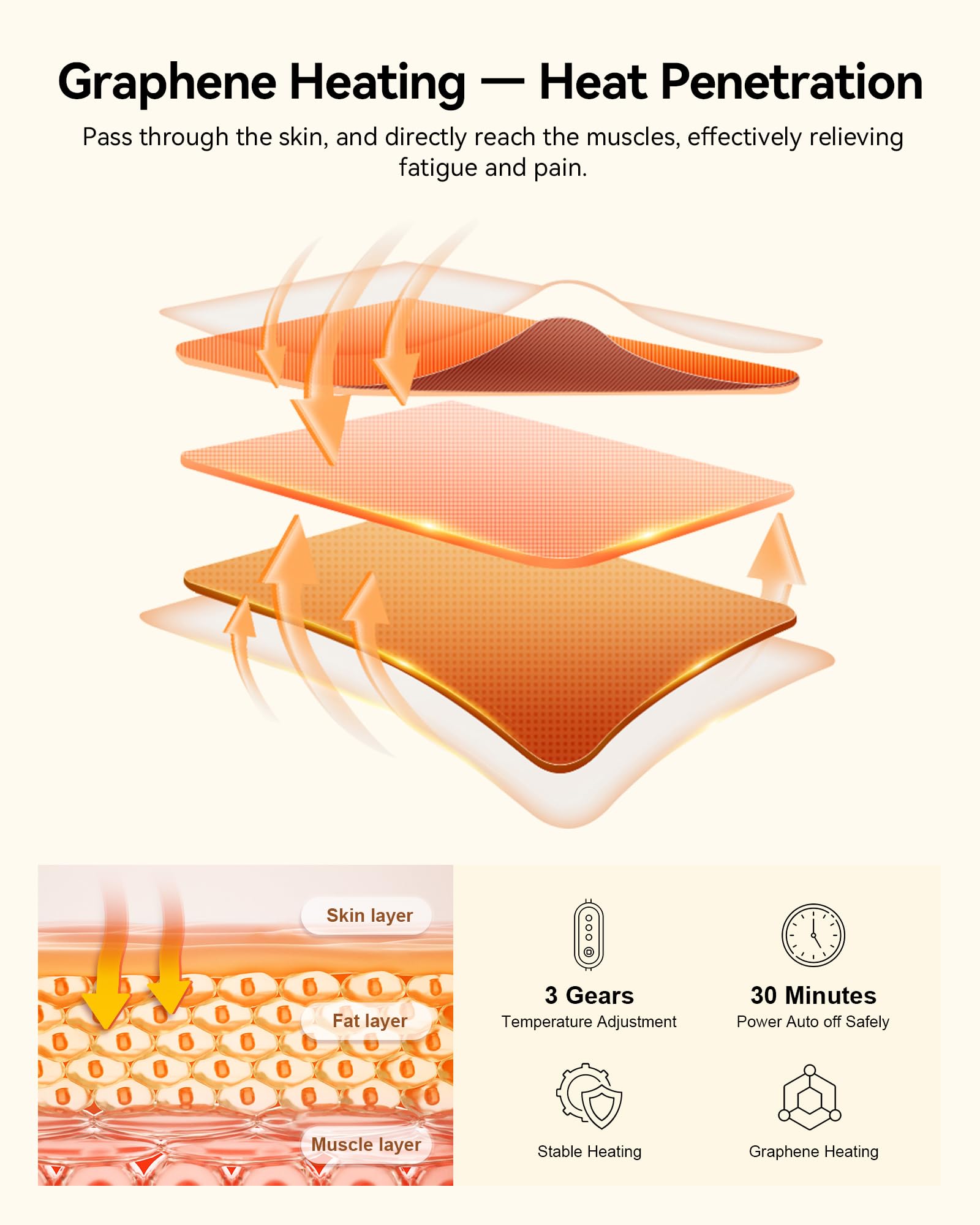 • Heated Neck Cervical Traction Pillow - Using natural gravity to correct the cervical spine, combined with graphene heating therapy, helping heat penetrate deeper into the muscles can promote blood circulation faster, reduce neck fatigue, reduce neck pain, and improve sleep quality. The USB-heated neck traction pillow has 3 levels of adjustable temperature and a 30-minute automatic shut-off function. Just plug the USB cable into the power bank, PC, or USB adapter (5V=1A charger/DC USB input)
