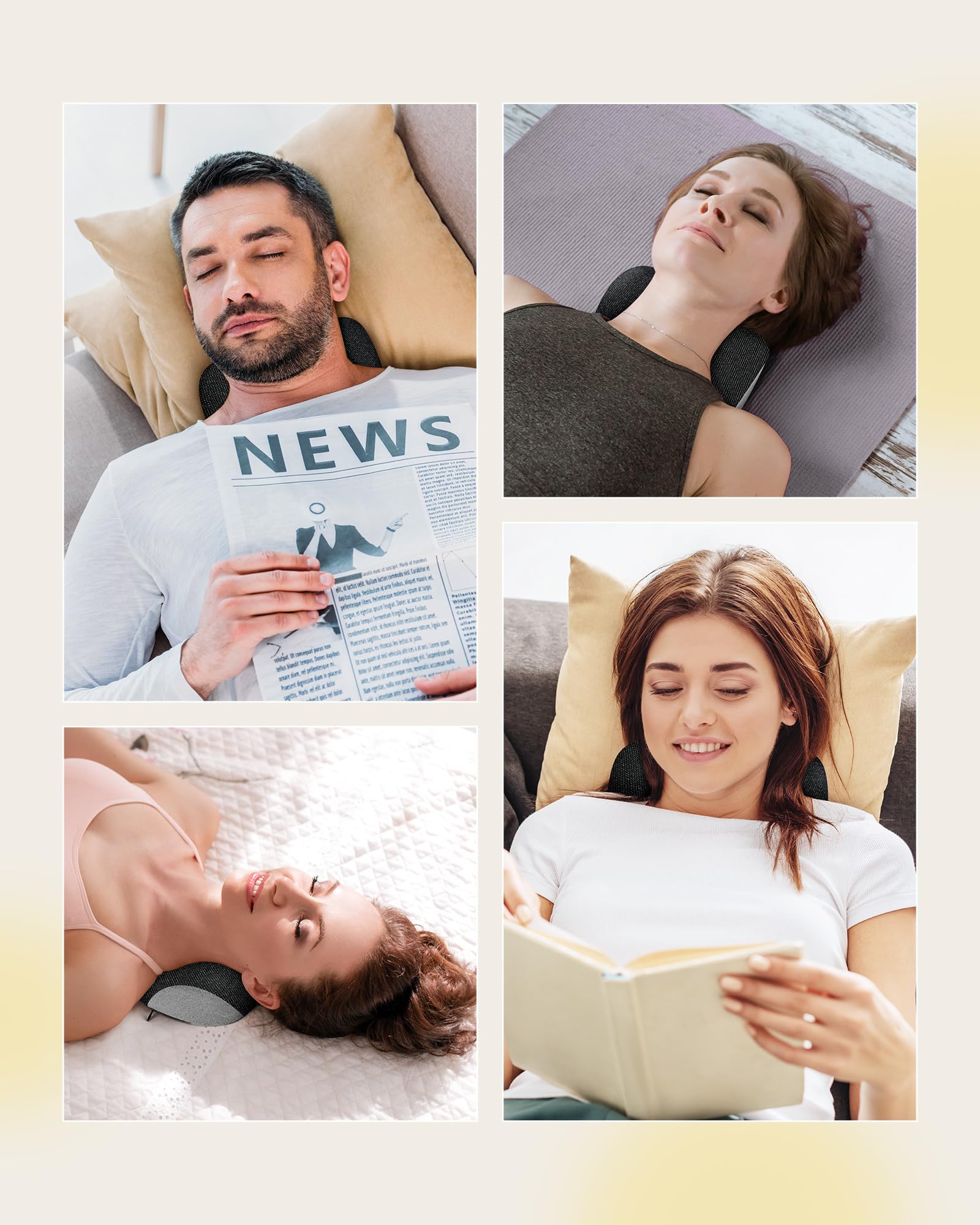 • Improve Life and Work - The long-term sedentary state in work/life can easily cause health problems such as fatigue or pain in our cervical spine, shoulder, or back. The neck and shoulder relaxer can effectively relax the neck and shoulder muscles and relieve fatigue, improving sleep quality. Great for staff, office workers, students, drivers, and people who need to bow their heads for a long time.