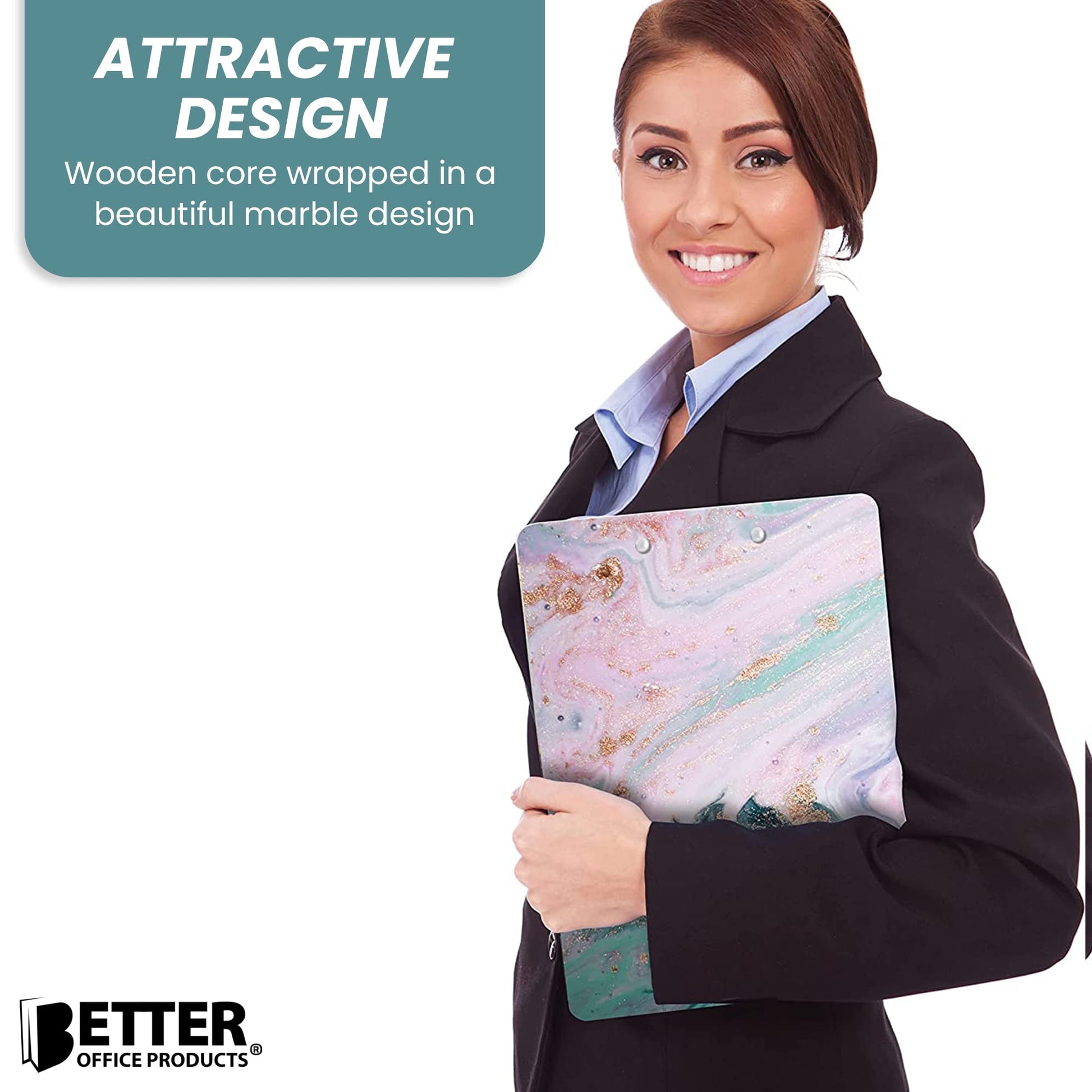 Better Office Products Fashion Clipboard, Marble Design, Standard A4 Letter Size, 12.5" x 9", Wooden Clipboard, Low Profile Clip with Retractable Hanging Tab, Decorative Clipboard (Marble Swirl)