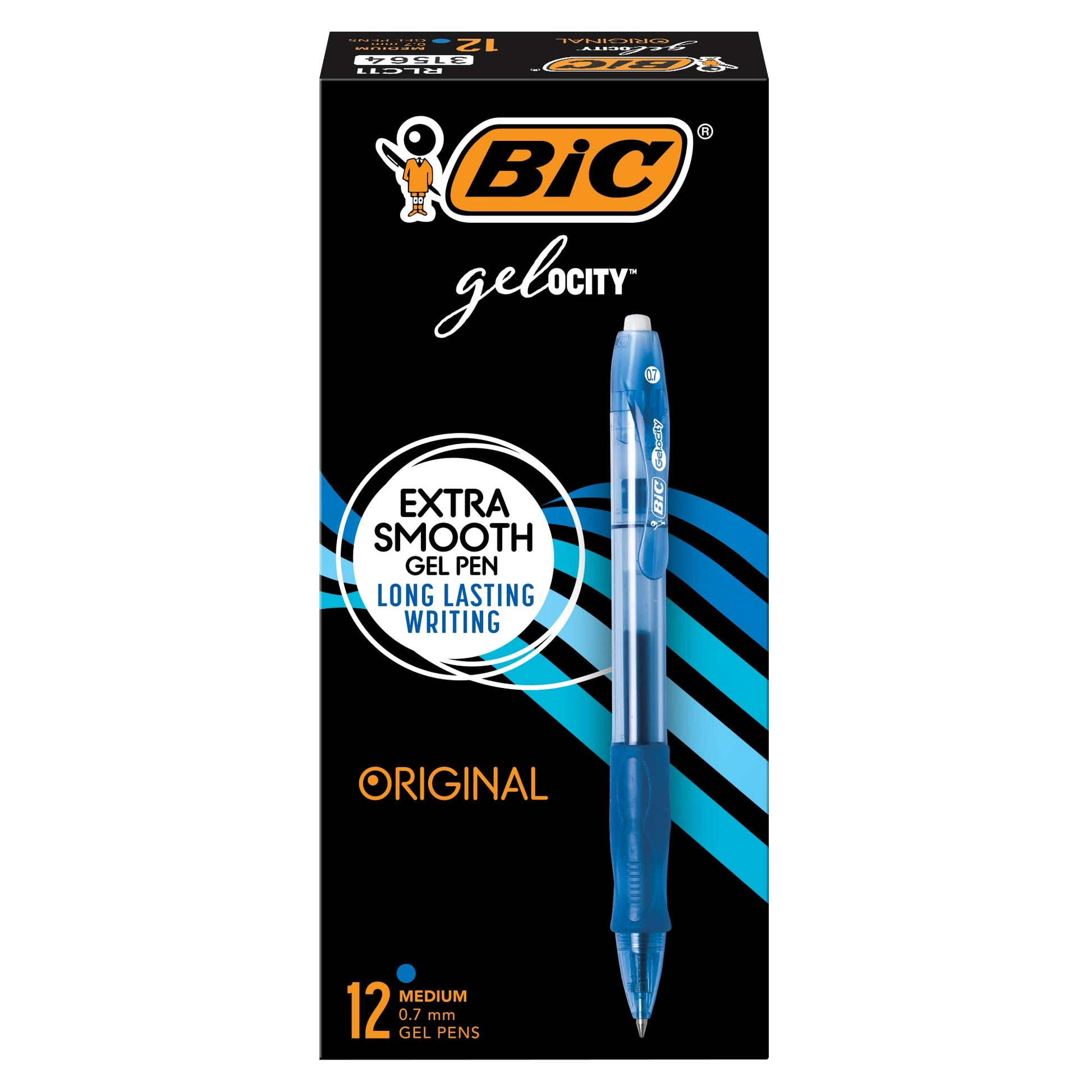 Details: Experience smooth writing with BIC Gelocity Original Blue Gel Pens. This 0.7mm medium point pen is a long-lasting gel pen that writes 20% longer* making it perfect for everyday writing at work, school or home. These pens also have smooth ink that writes fluidly and effortlessly. Creating clear, dark lines, they’re the ideal gel pens for writing lists, taking notes, journaling and more. The round barrel features a grip that offers a secure yet comfortable hold, making it ideal for prolonged writing sessions. Plus, the plastic clip easily attaches to pockets, notebooks and more for quick access on the go. Designed for convenience, these retractable pens let you start writing with just one click, and a translucent barrel lets you easily keep track of the remaining ink supply. Gel ink pens are smooth writing pens that are easier to use for long periods of time than a standard ballpoint. With this 12-count pack of gel pens, you can write clearly and comfortably for hours. Looking for a reliable gel pens bulk pack for school or office supplies? Choose BIC Gelocity Original Blue Ink Gel Pens for a high-quality, safe and affordable product you can trust. *vs BIC Gelocity Quick Dry