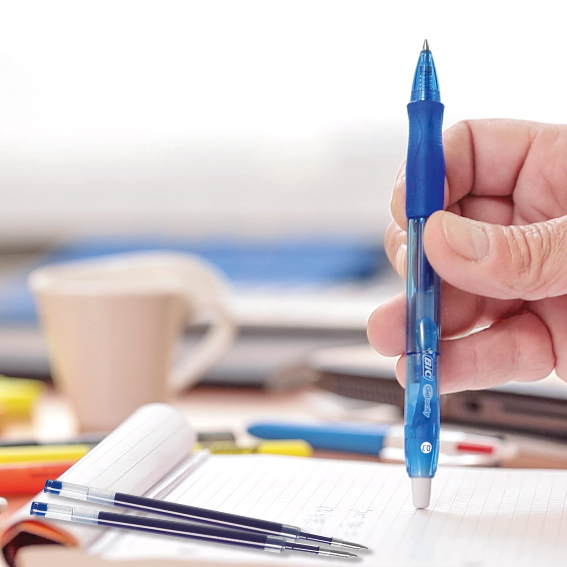 • Convenient retractable BIC gel pens with a grip and plastic clip — ideal for office or school supplies