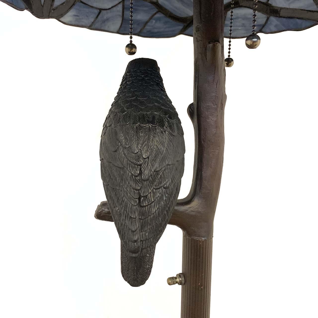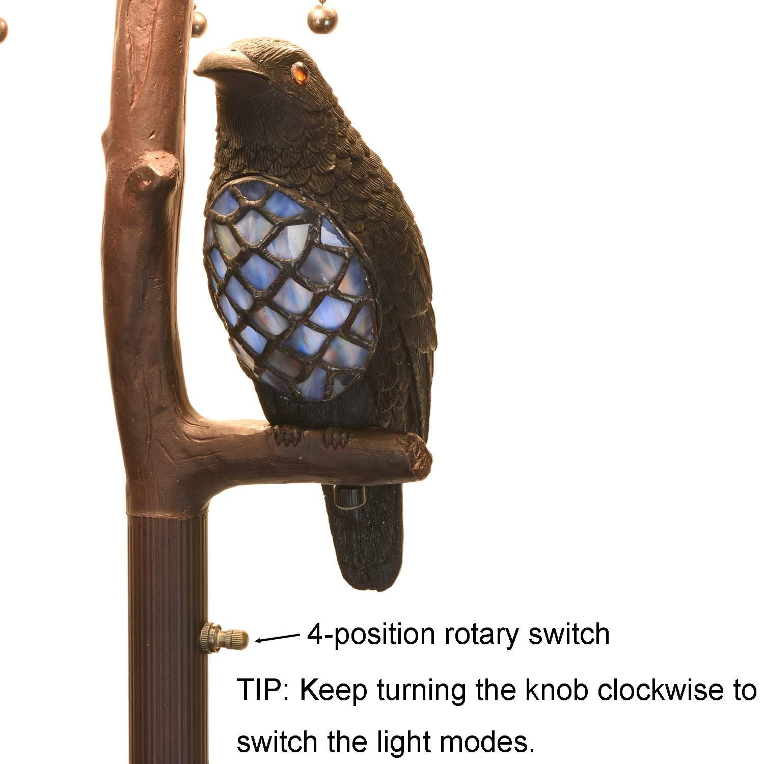 Bieye L10882 Ravens Sitting on Bare Tree Branch Against Full Moon Tiffany Style Stained Glass Floor Lamp with Raven Night Light Double Lit for Halloween Décor, 4-Light, 65 inches Tall (Dark Blue)