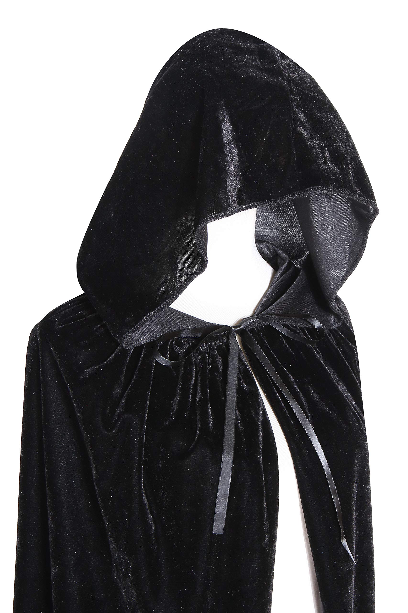 BIGXIAN Long Hooded Cloak Velvet Cape Witch Costume Halloween Costumes for Women Men (Black, Medium)