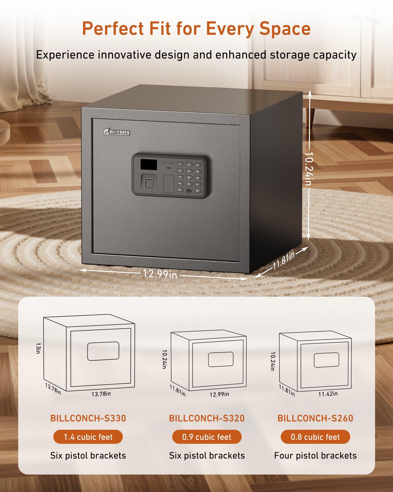 Billconch Smart Gun Safe for Multiple Pistols - Biometric Automatic Lock Safe Box with LCD Display/Voice Guide/Foldable Gun Racks, Quick Access Unlock with Fingerprint/Keypad/Key/App