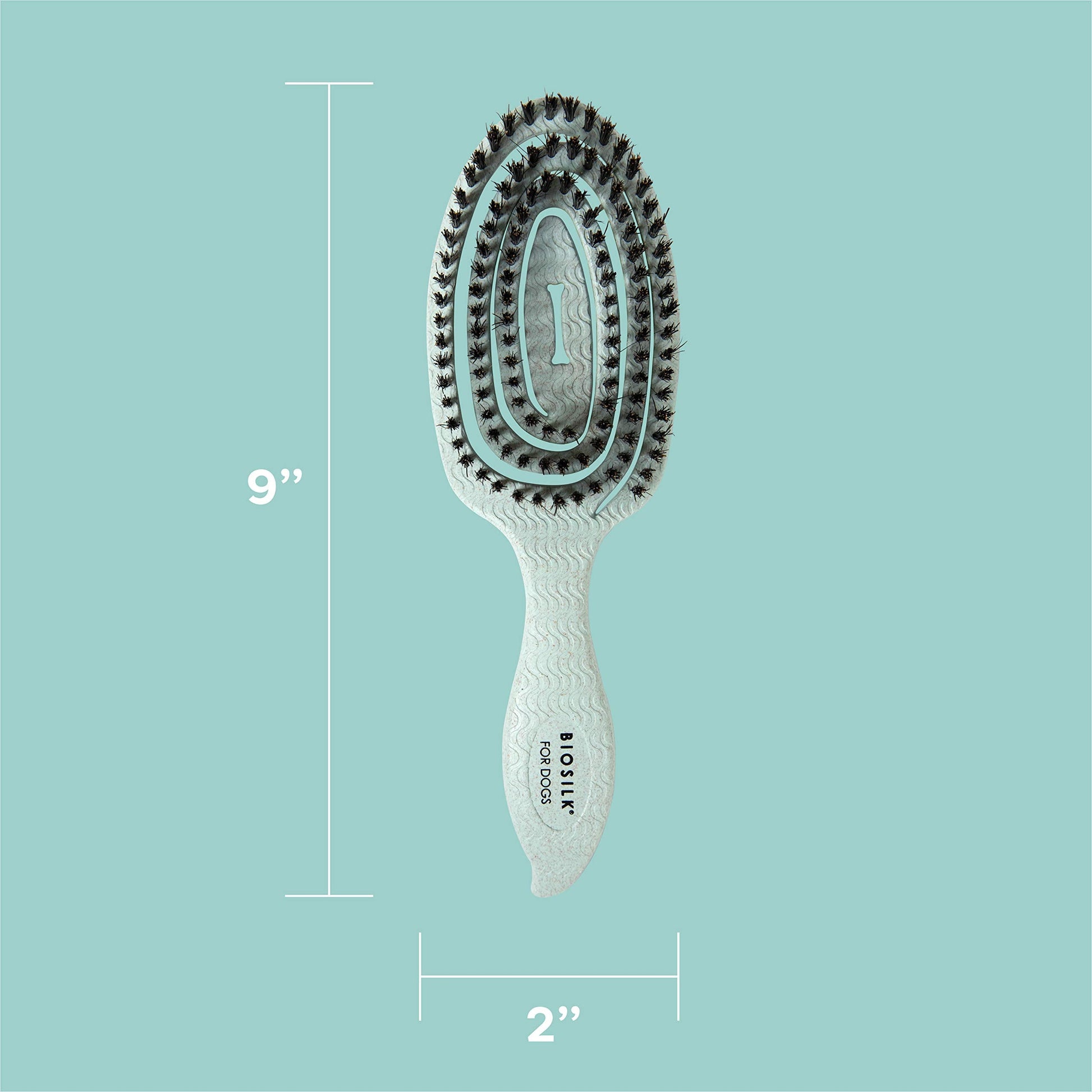BioSilk for Dogs Eco-Friendly Boar Hair Bristle Brush in Mint Green | Easy to Hold Ergonomic Handle Dog Brush for Shedding | Best Pet Brush for Dog Grooming