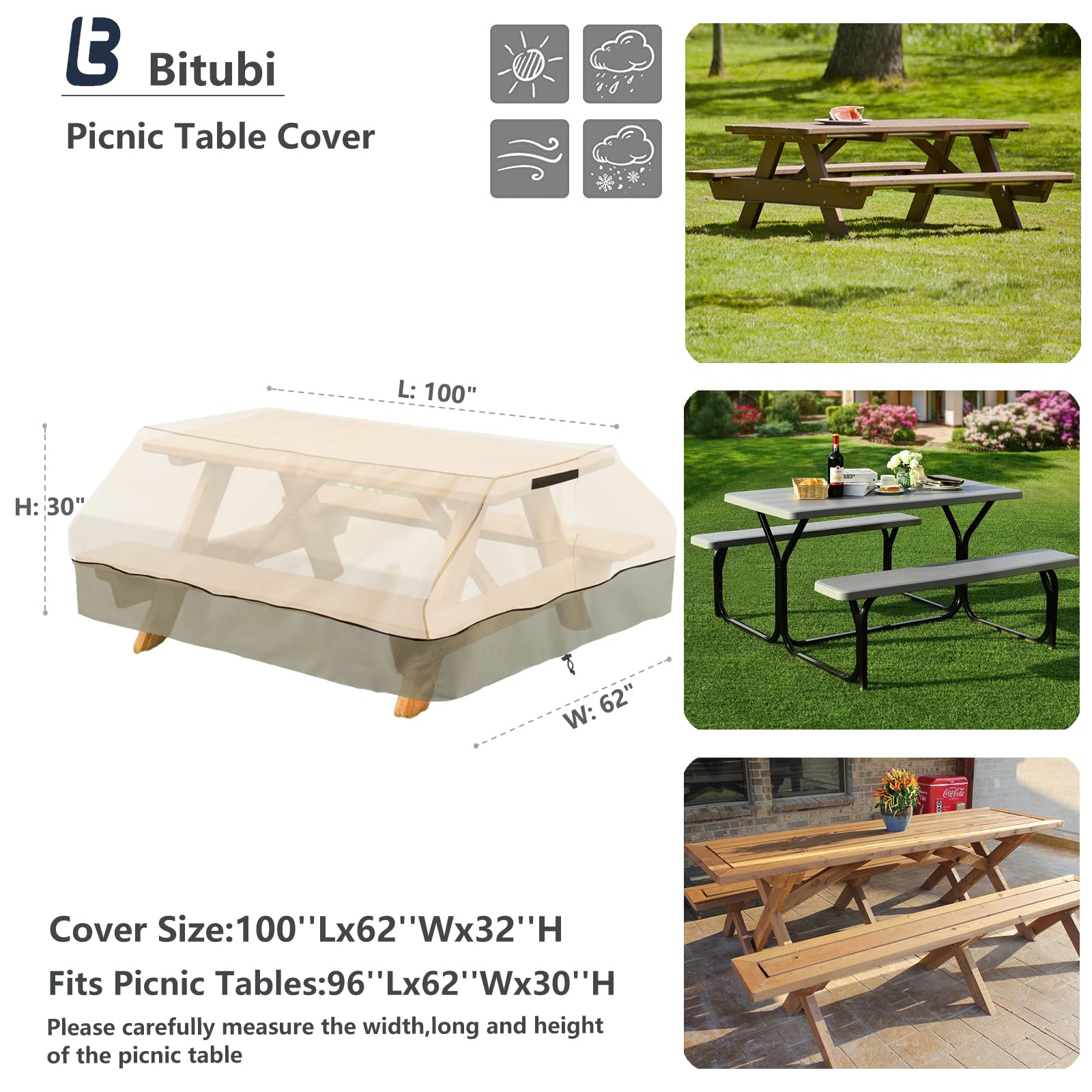Bitubi 96 Inch Heavy Duty Waterproof Picnic Table Cover - 600D Tough Canvas Wind Dust Proof Anti-UV Outdoor Patio Table Bench Covers Winter