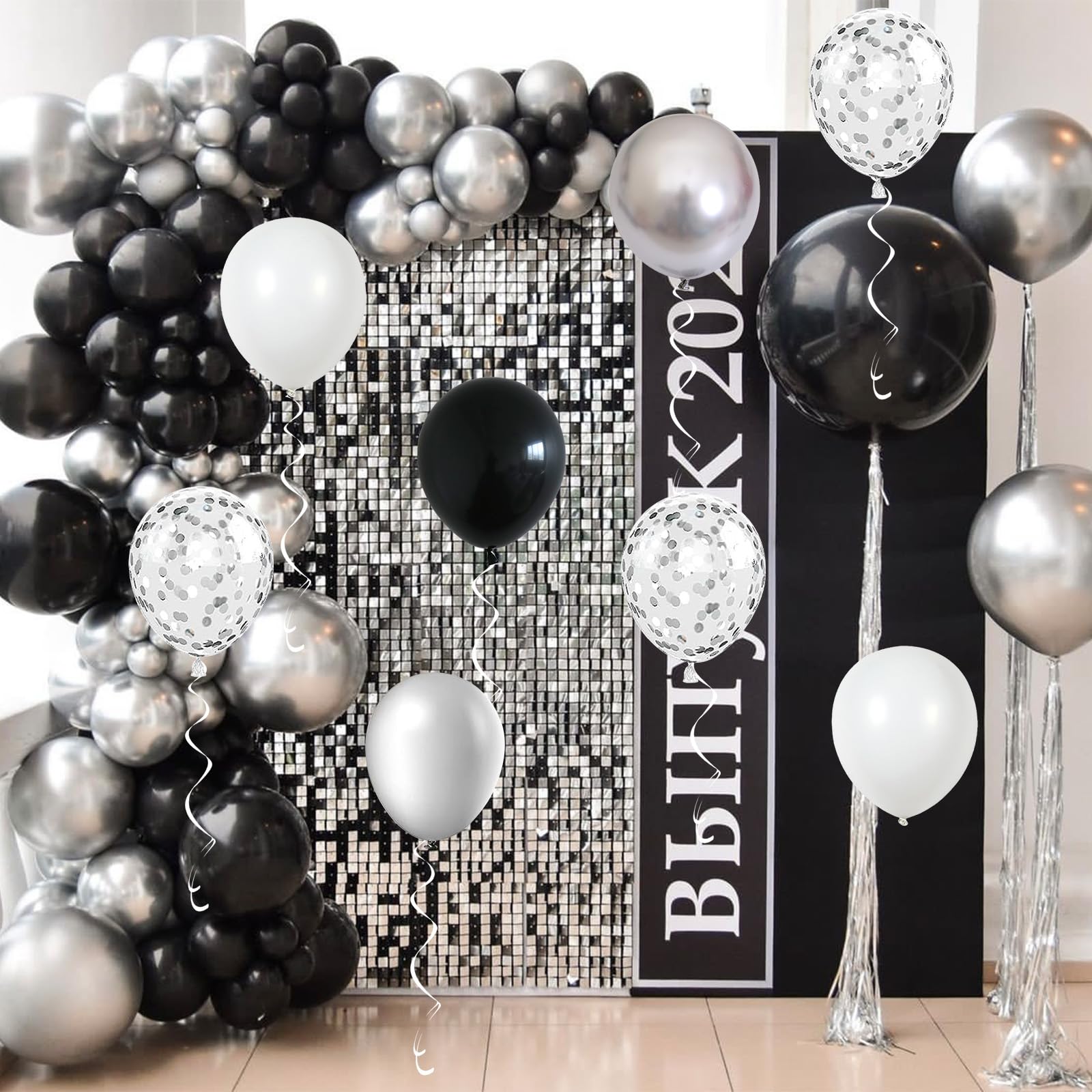 • WIDE APPLICATION: These black white silver balloon party supplies are great for wedding, proposal, bachelorette parties, engagement parties, retirement parties, graduation, valentine's Day, birthday parties, holiday celebration decorations.