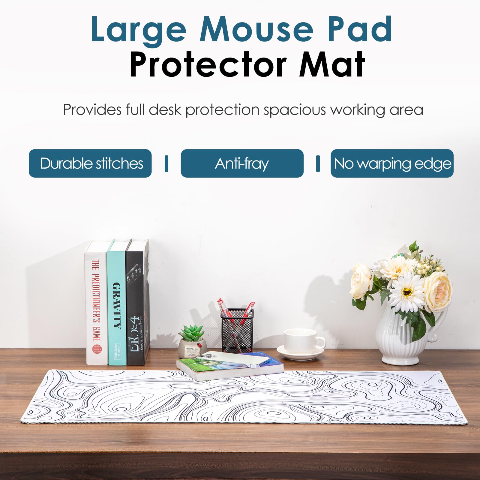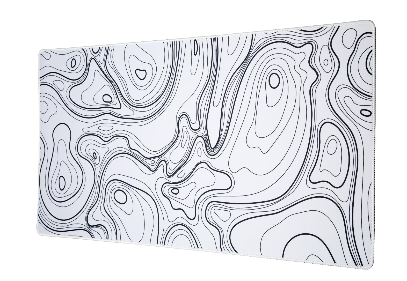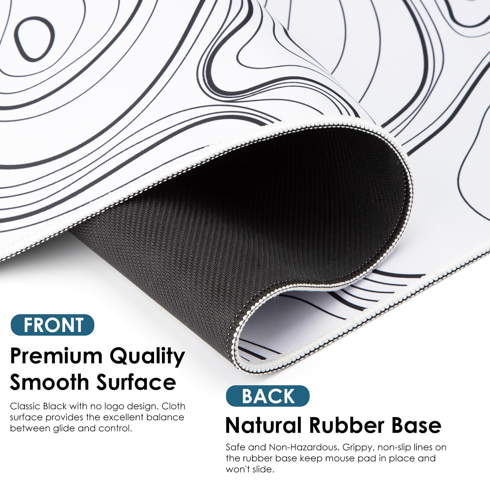 Black and White Large Gaming Mousepad - Extended Contour Topography Mouse Mat for Home and Office,Laptop Keyboard Mat with Non-Slip Rubber Base, Stitched Edges (35.43x15.75 x0.12, Not Waterproof)