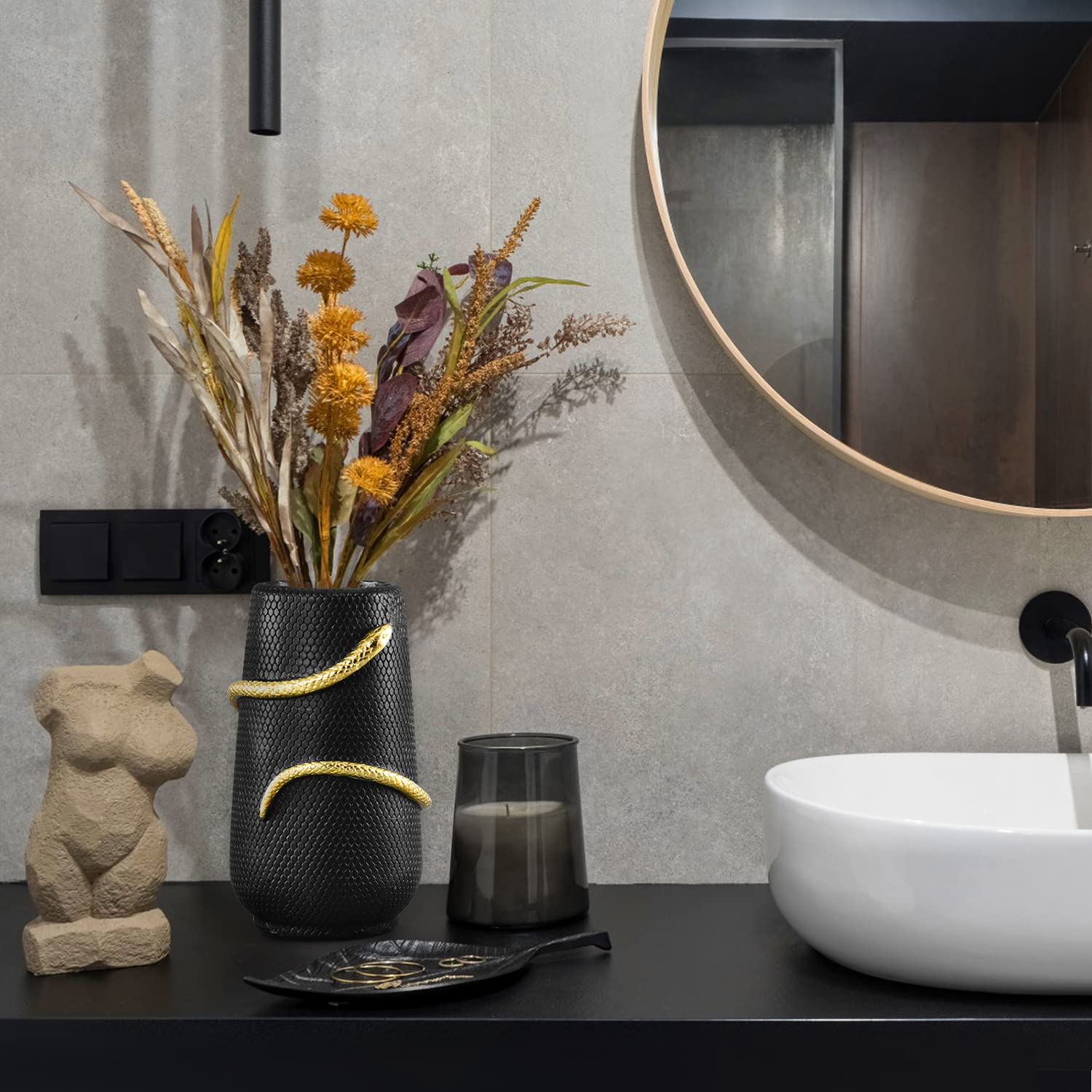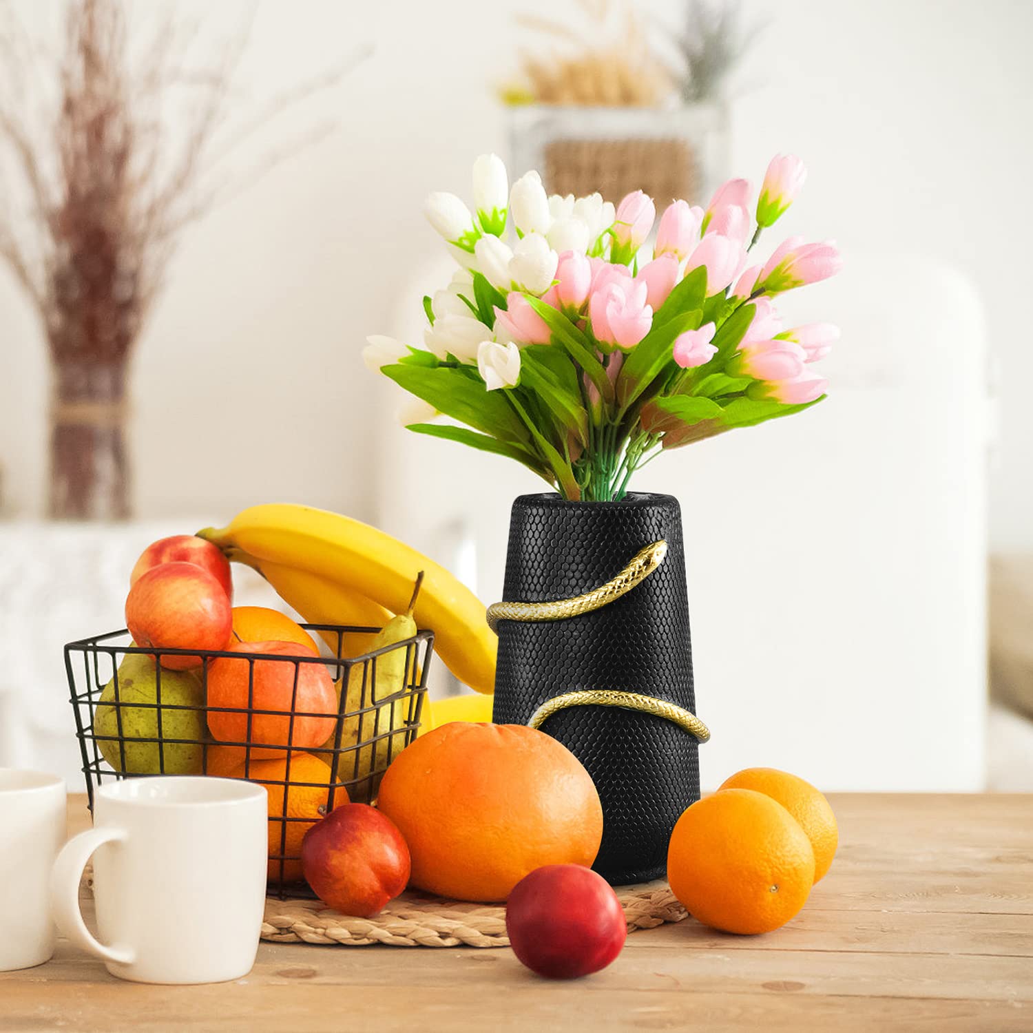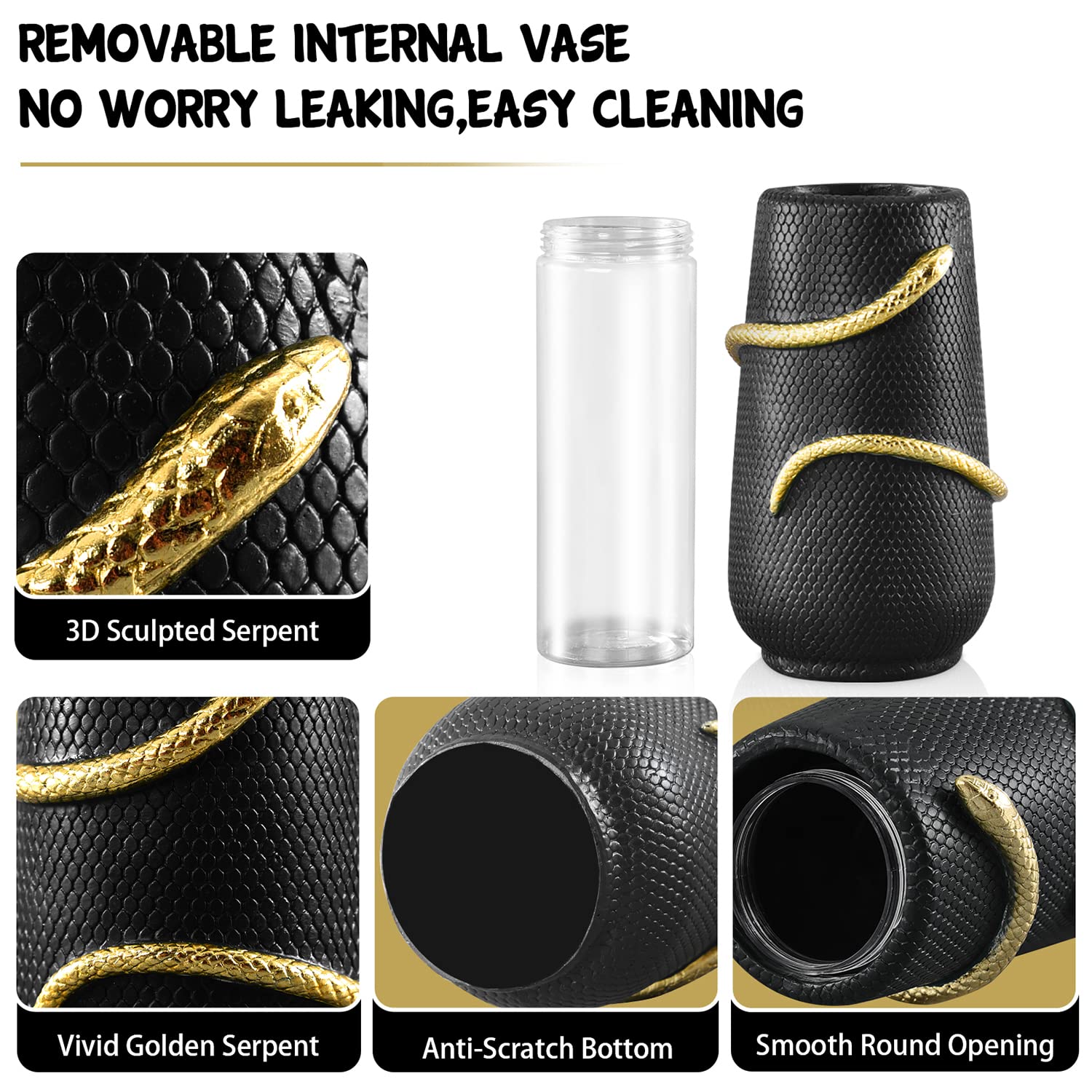 • Unique Flower Vase- This black and gold decorative vase is elegant in shape and featured with a golden serpent twining around it. Amazing 3D polka dots with texture is all around body. It brings you softness and peace in heart. You will fall in love with it at the first sight.