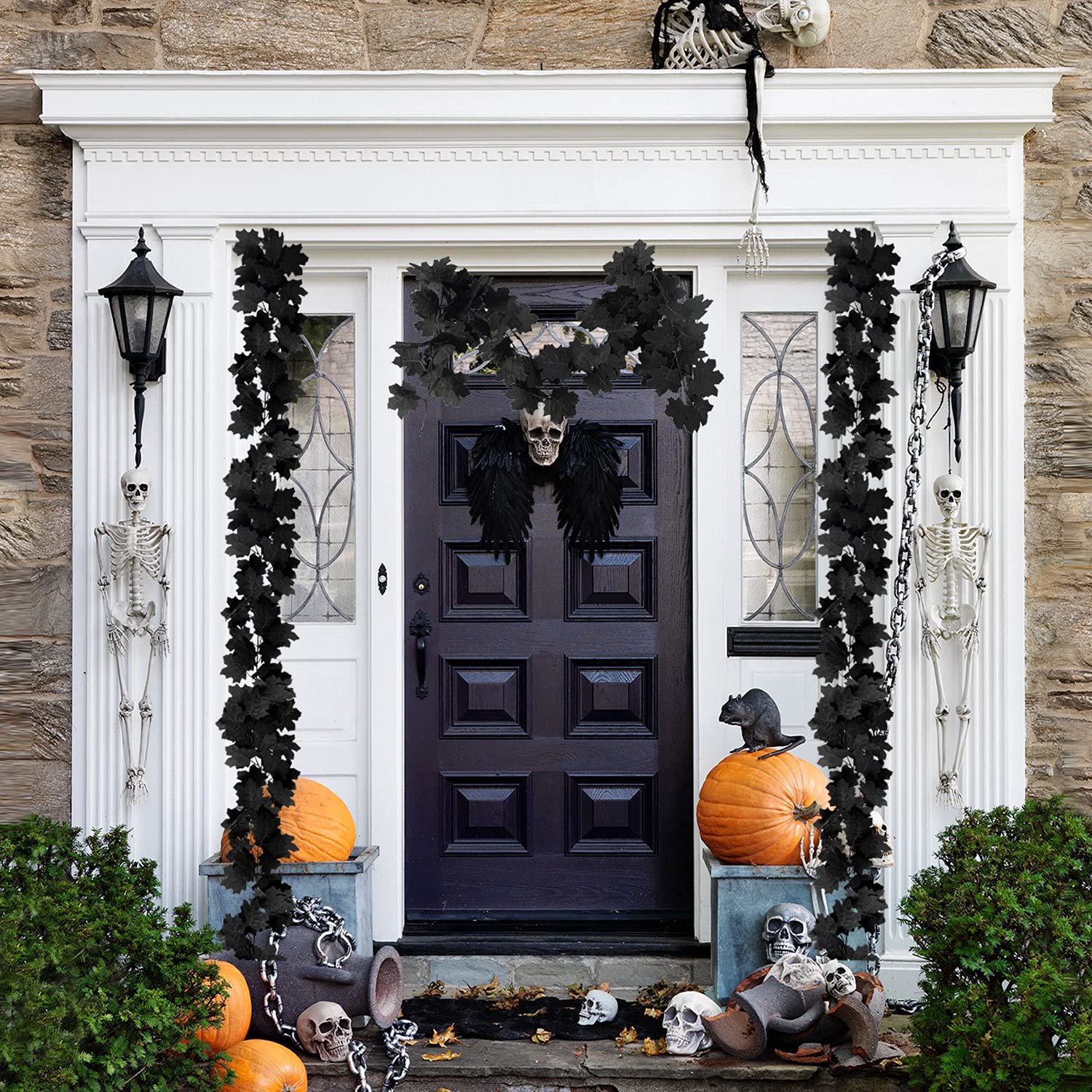 • UNIQUE DESIGN: Black is the classic Halloween theme color, and maple leaves are classic decorations. The black maple leaves garland is a unique and new design, which perfectly fits the mystery and horror atmosphere of Halloween