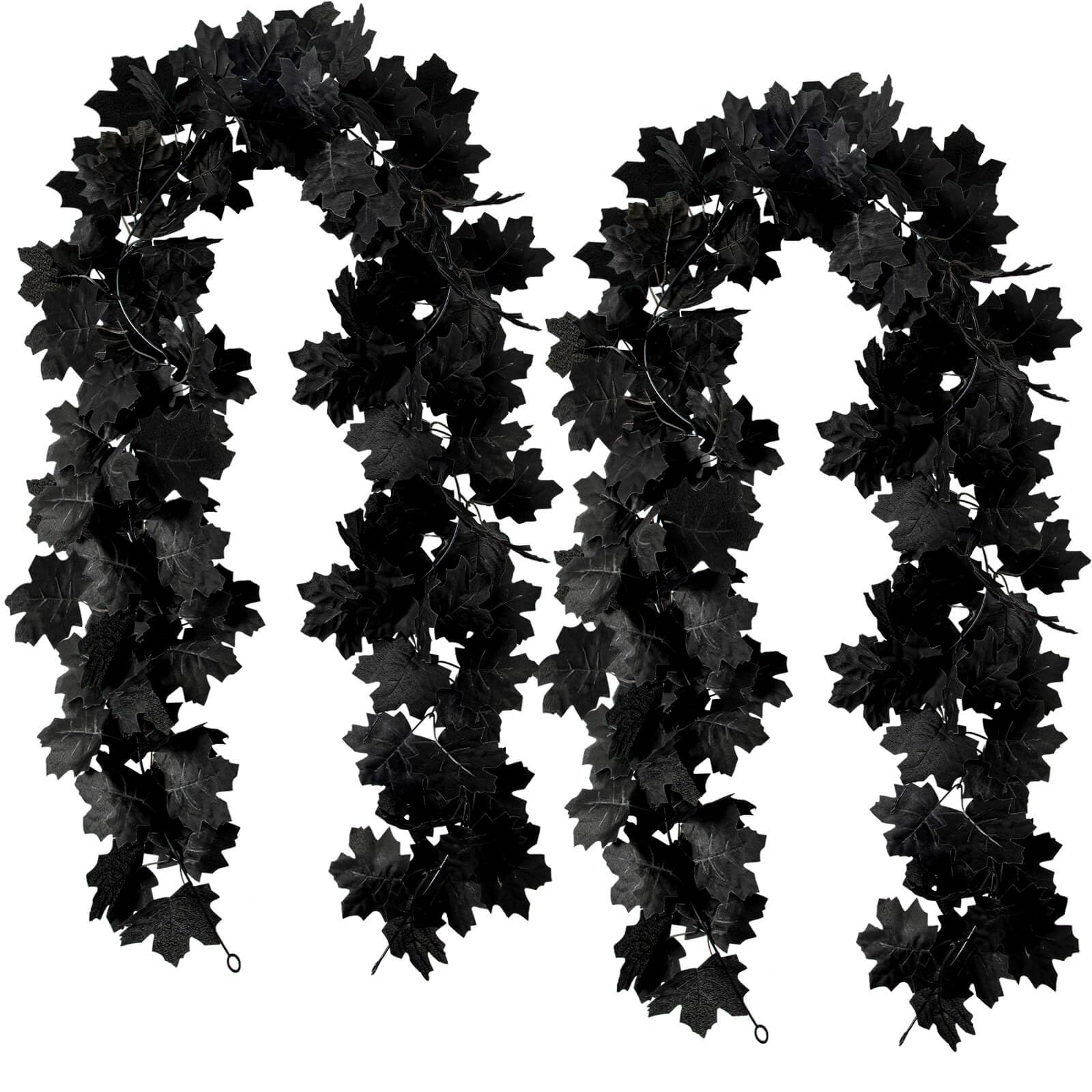 • UNIQUE DESIGN: Black is the classic Halloween theme color, and maple leaves are classic decorations. The black maple leaves garland is a unique and new design, which perfectly fits the mystery and horror atmosphere of Halloween