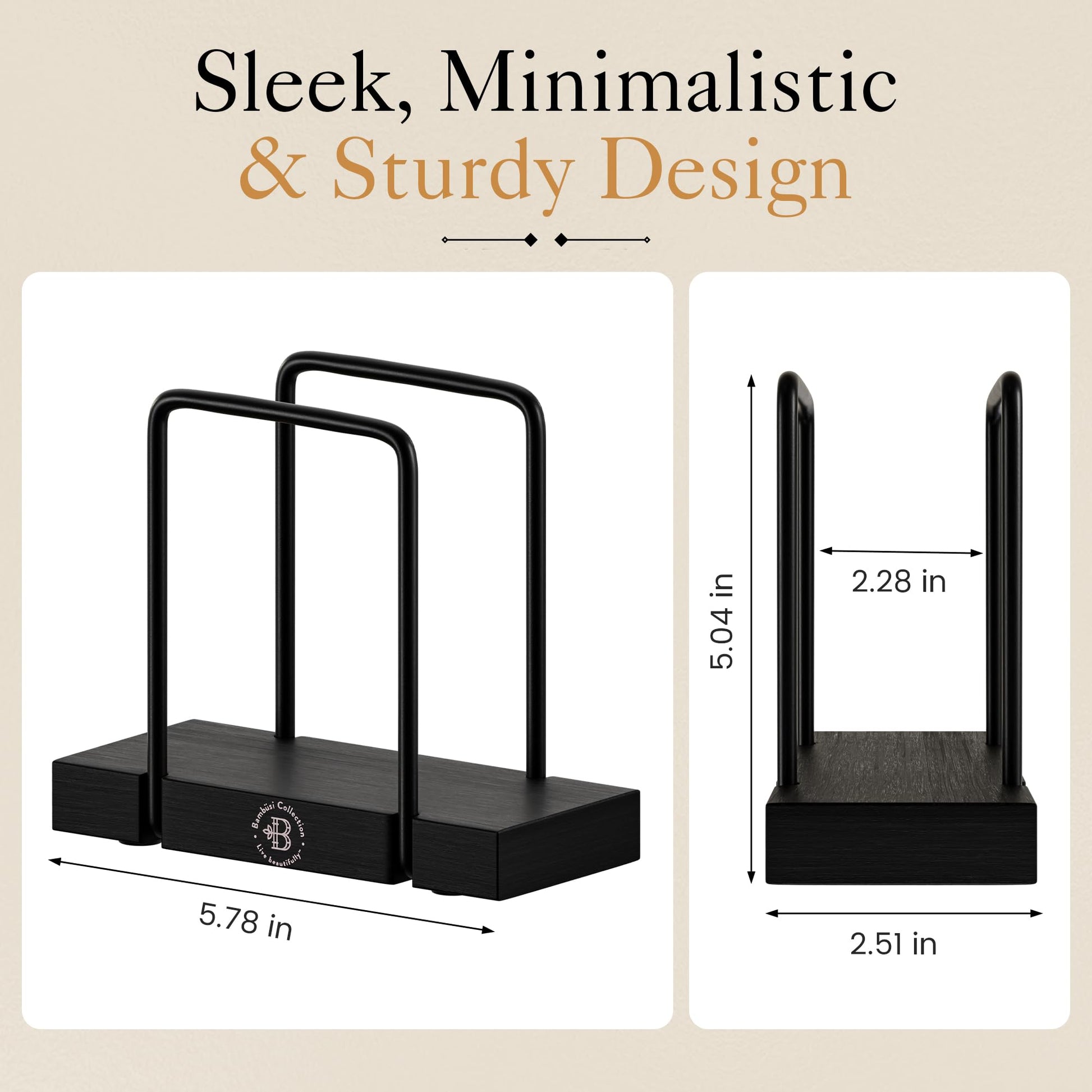 Black Napkin Holder for Table - Modern Napkin Dispenser, Bamboo and Iron Design, Non-Slip, Suitable for Kitchen, Dining, Farmhouse, Cocktail, Picnic, Bar, Outdoor Use - Holds Paper Napkins, Mail, Bill