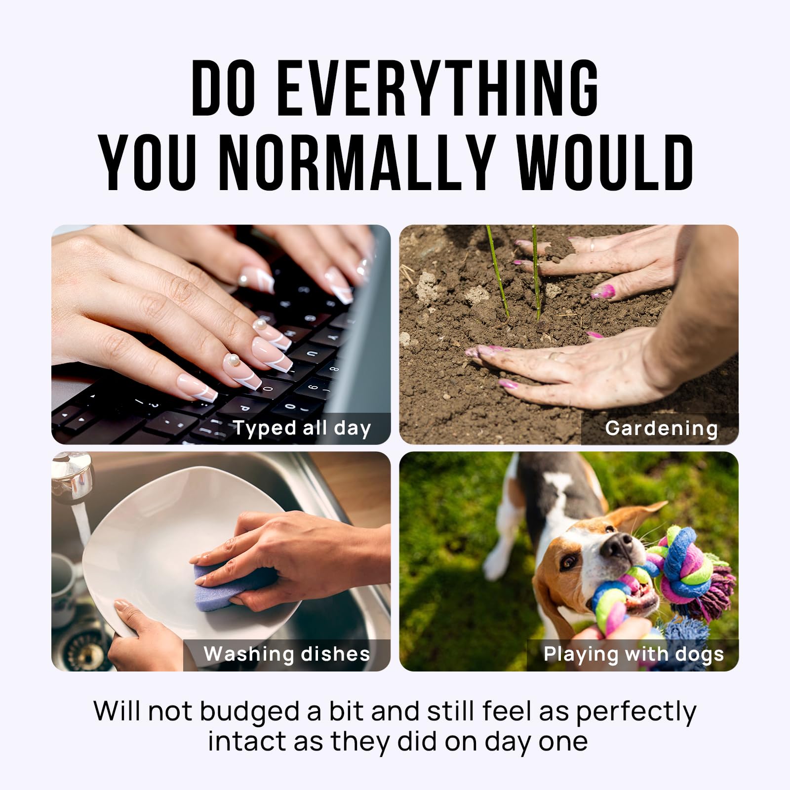 • How Natural They Are:These acrylic press on nails are made by soft gel which is soft and flexible, zero pressure on your nail beds and feel like real nails. Supremely fit the nail bed with a gentle flex and a seamless cuticle line.